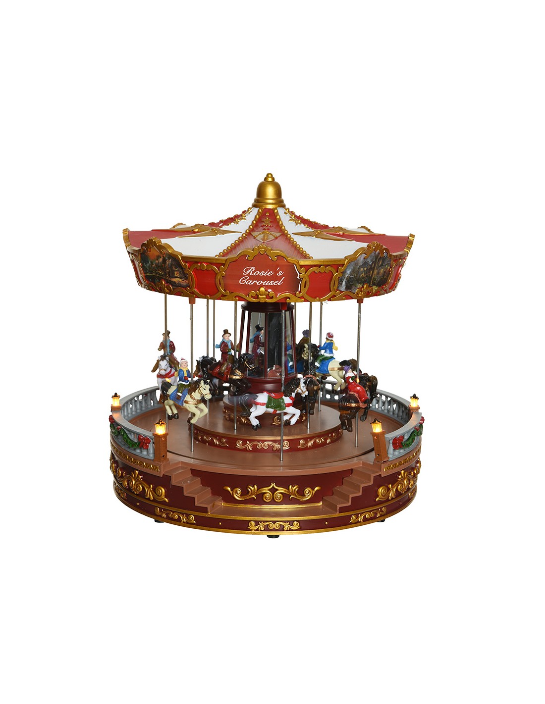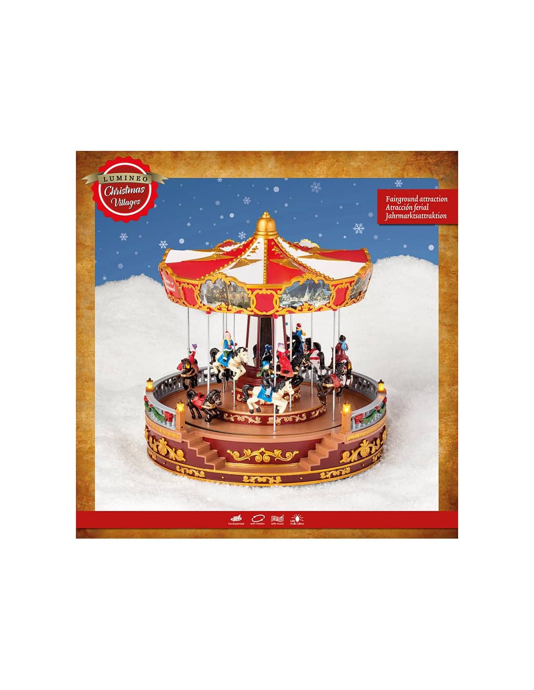 Carrusel de invierno con movimiento, con música y luz led multicolor, pintado a mano, incluye transformador de 1,8 m, solo para uso interior, bombillas no reemplazables, medidas: 31 x 31 x 28 cm