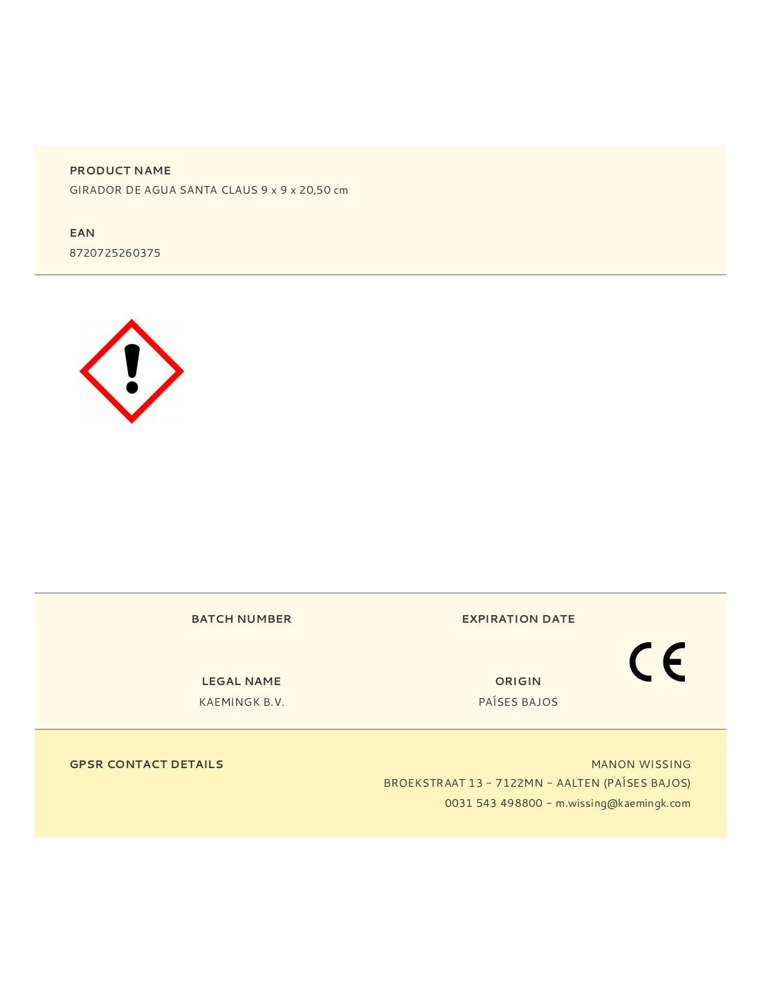 Girador de agua santa claus, 2 leds, luz led cálida fija, para uso en interiores, funciona con pilas 3 x aa (no incluidas). opcional con transformador (no incluido), medidas: 9 x 9 x 20,50 cm