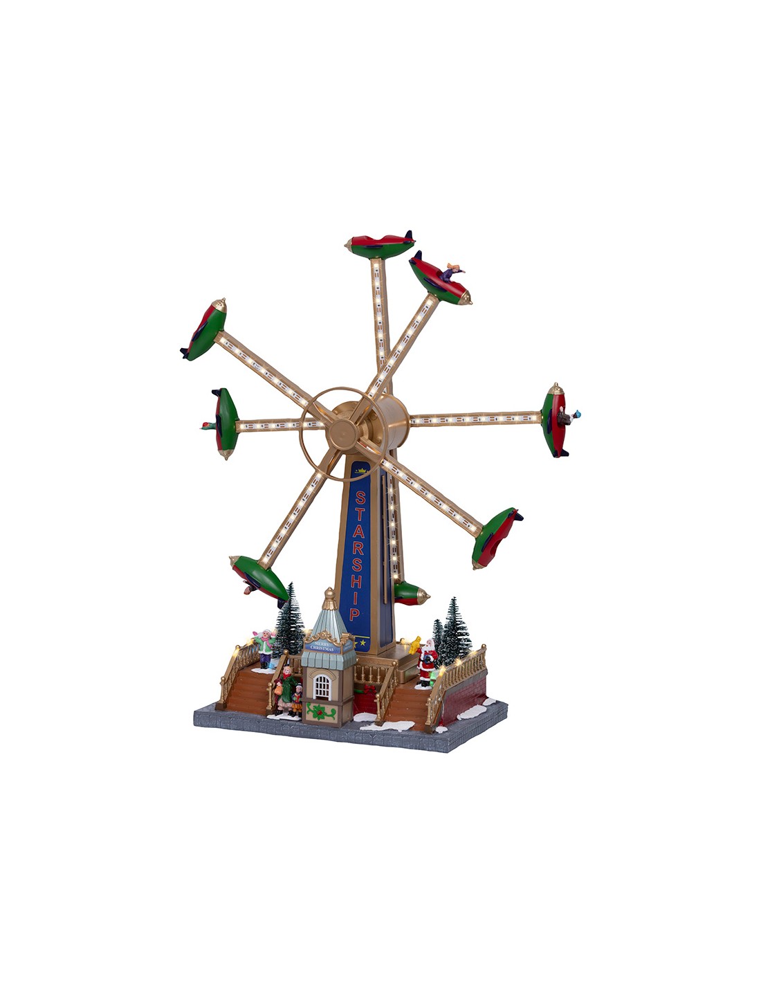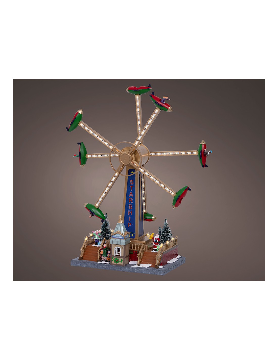 Escena navideña atracción de feria con movimiento, sonido y luz led multicolor, 2 modos: on1 (música, luz y movimiento), on2 (luz y movimiento), para interior, pintado a mano, cable alimentación 1,8 m, medidas: 36,5 x 19,00 x 47,60 cm