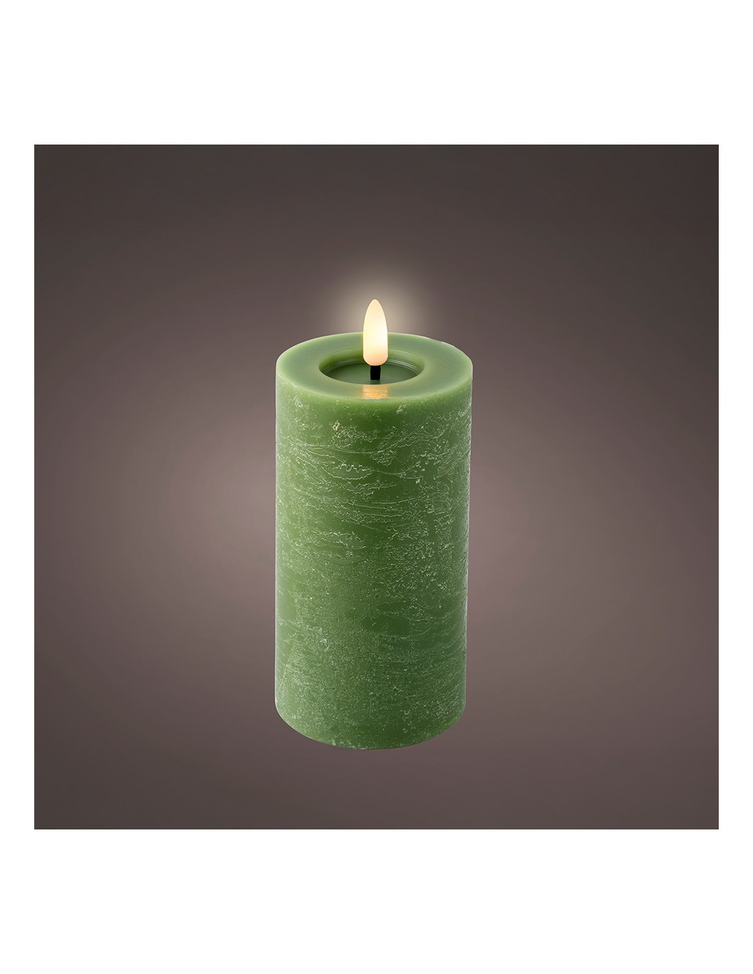 Vela de cera led, efecto llama, color verde, superficie lisa, acabado rústico, medidas: ø7 x 15 cm, uso: interior, color led: luz cálida con temporizador 6 h encendida/18 h apagada autonomía: 250 h funciona con pilas 2 x aaa (no incluidas)