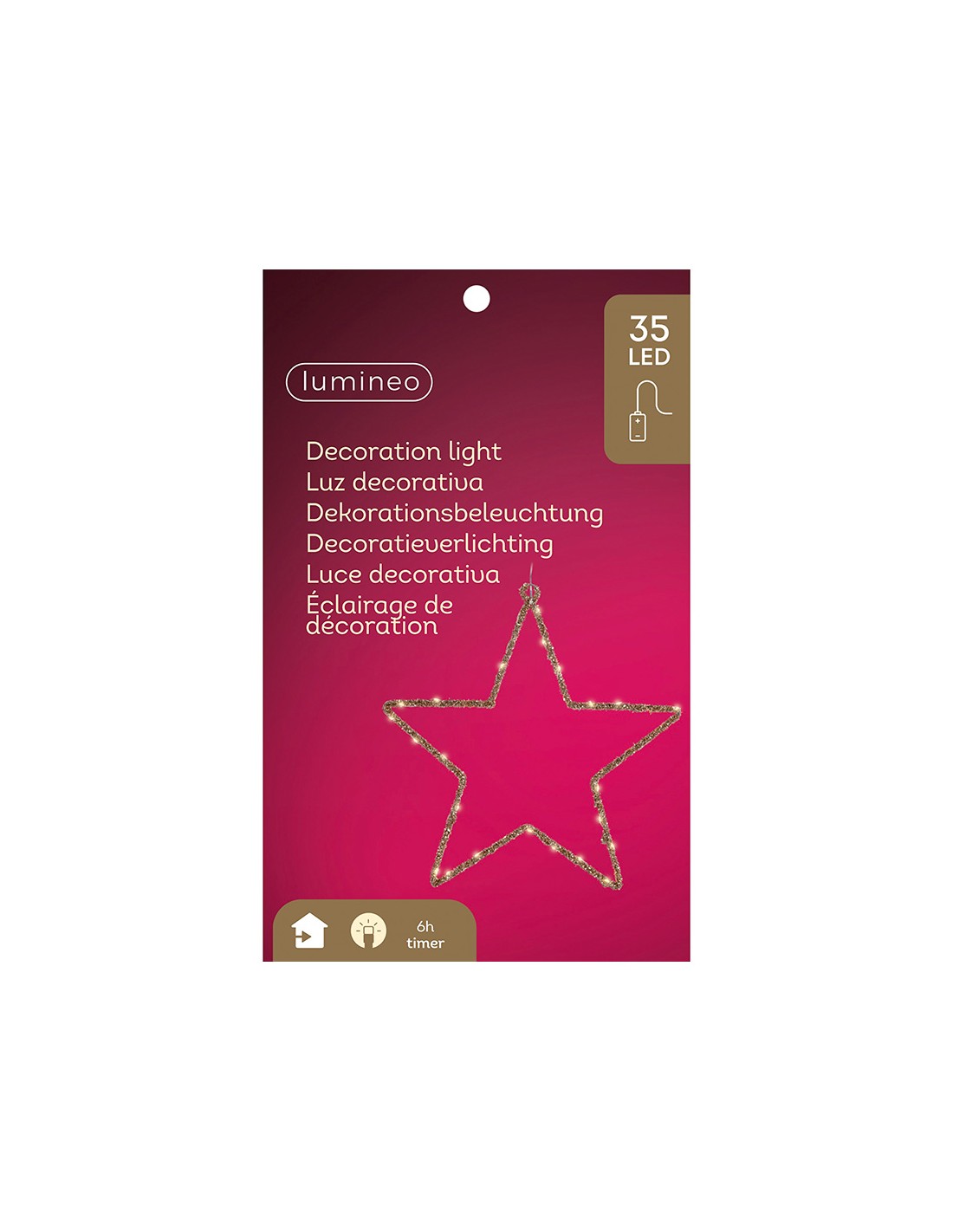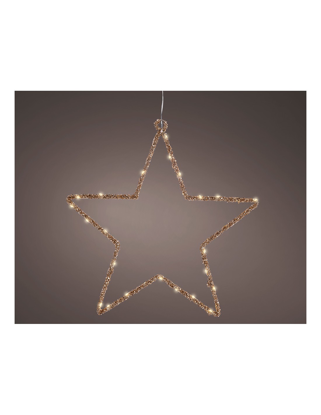 Estrella decorativa dorada con led, luz cálida, función fija, con temporizador 6 h encendida/18 h apagada, material: metal, para interior, funciona con pilas 2 x aa, medidas: 38 x 38 cm