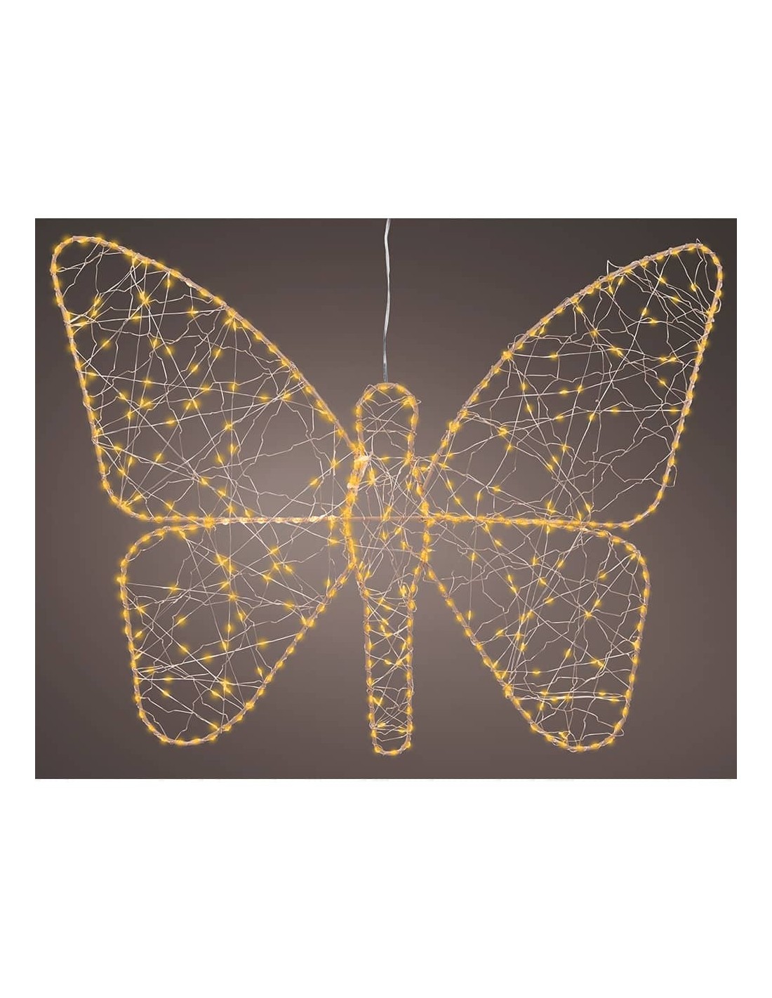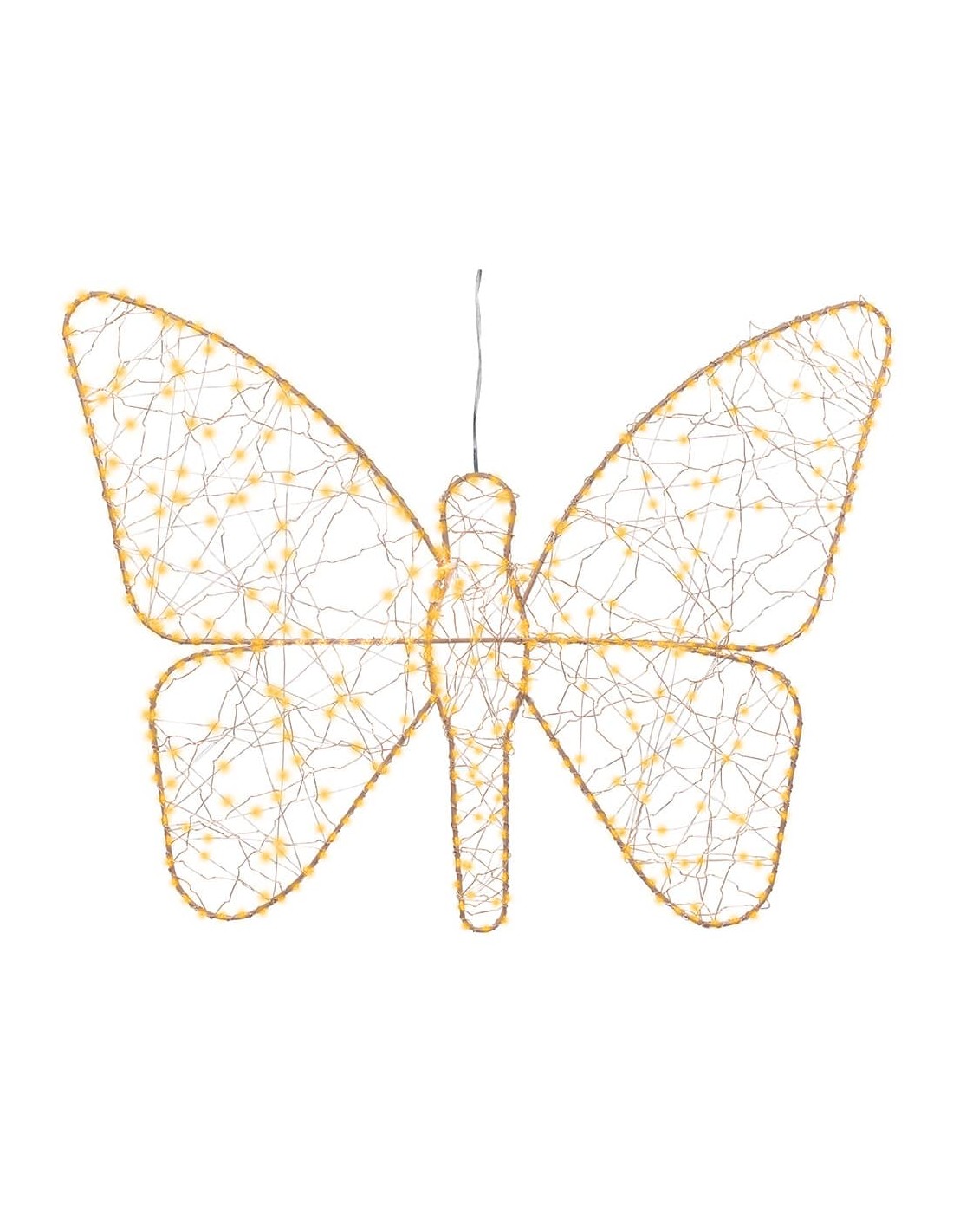 Luz led decorativa mariposa 436 led color: dorado uso: exterior material: metal color led: luz fría y cálida función: efecto parpadeante. temporizador: 8 h encendido/16 h apagado. cable de alimentación: 5 m medidas: 43 x 58 cm