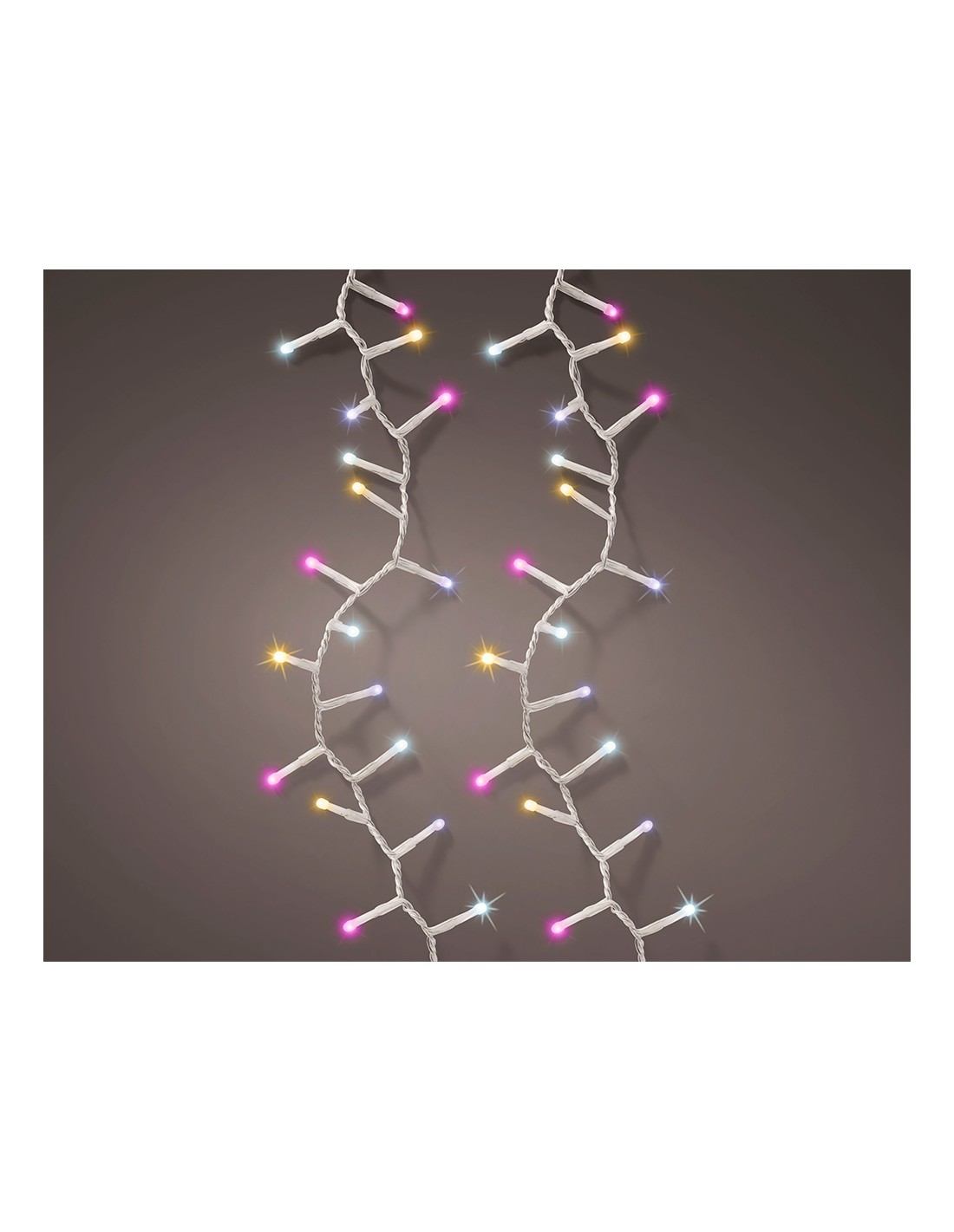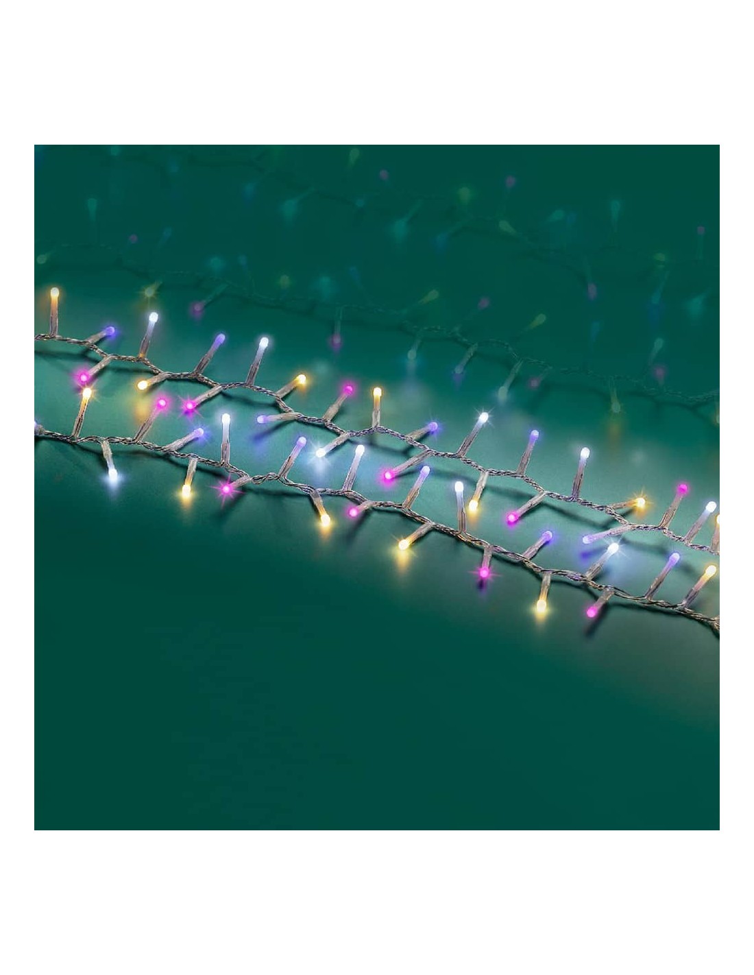 Guirnalda de luces con 8 funciones de efecto intermitente, incluyendo modo fijo, 500 leds multicolor, 220 - 240 v 50/60 hz, para interior y exterior ip44, cable transparente, cable alimentación 5 m, distancia entre la primera bombilla y la última 11 m, largo total 16 m, temporizador 8 h encendido / 16 h apagado