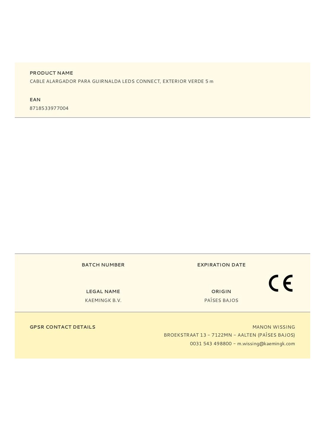 Cable alargador para guirnalda leds connect, exterior verde 5 m
