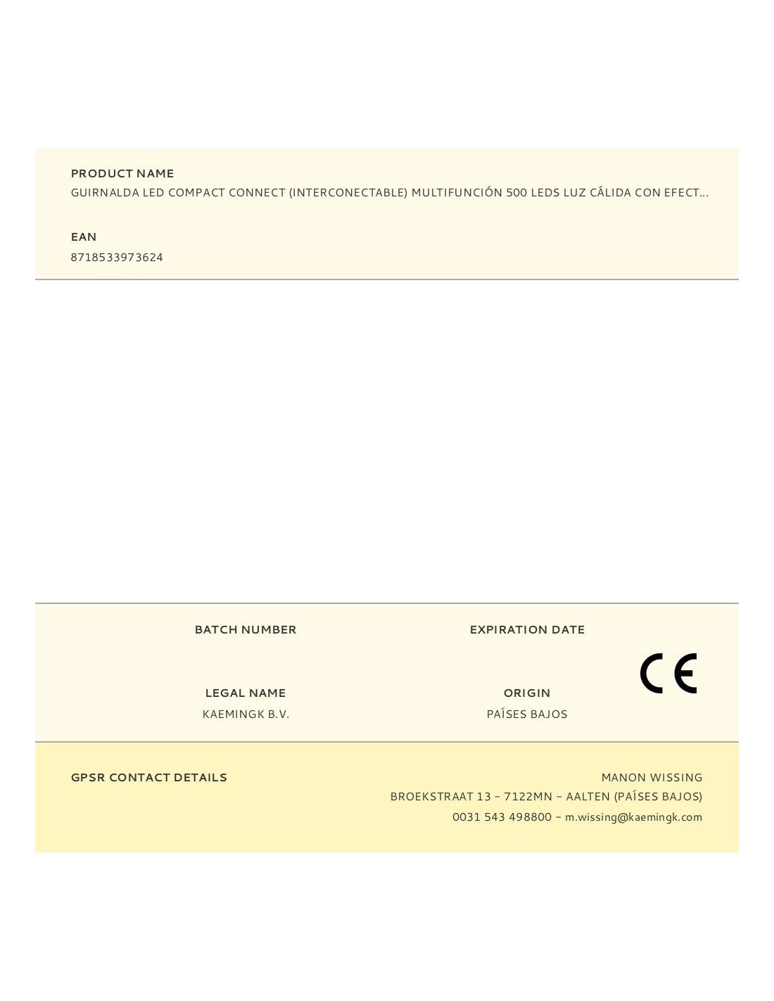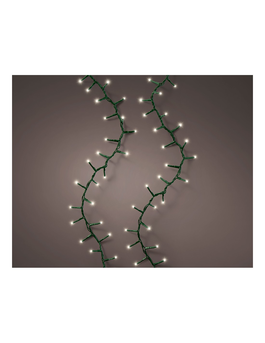 Guirnalda led compact connect (interconectable) multifunción 500 leds luz cálida con efecto intermitente, 220 - 240 v 50/60 hz, ip44, cable verde, permite conectar hasta 3000 leds con el transformador de 12 w, 8 funciones, adaptador ce, cable alimentación 5 m, distancia entre leds 16 cm, distancia entre la primera bombilla y la última 11 m, largo total 16 m. temporizador: 8 h encendido / 16 h apagado, incluye transformador 12 w