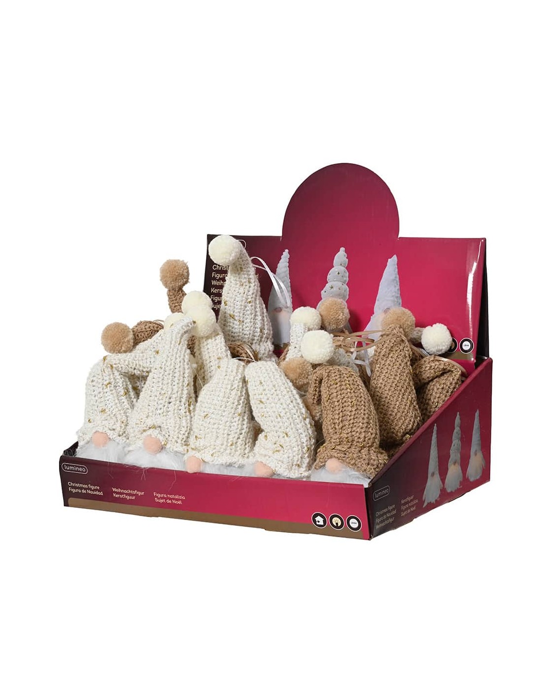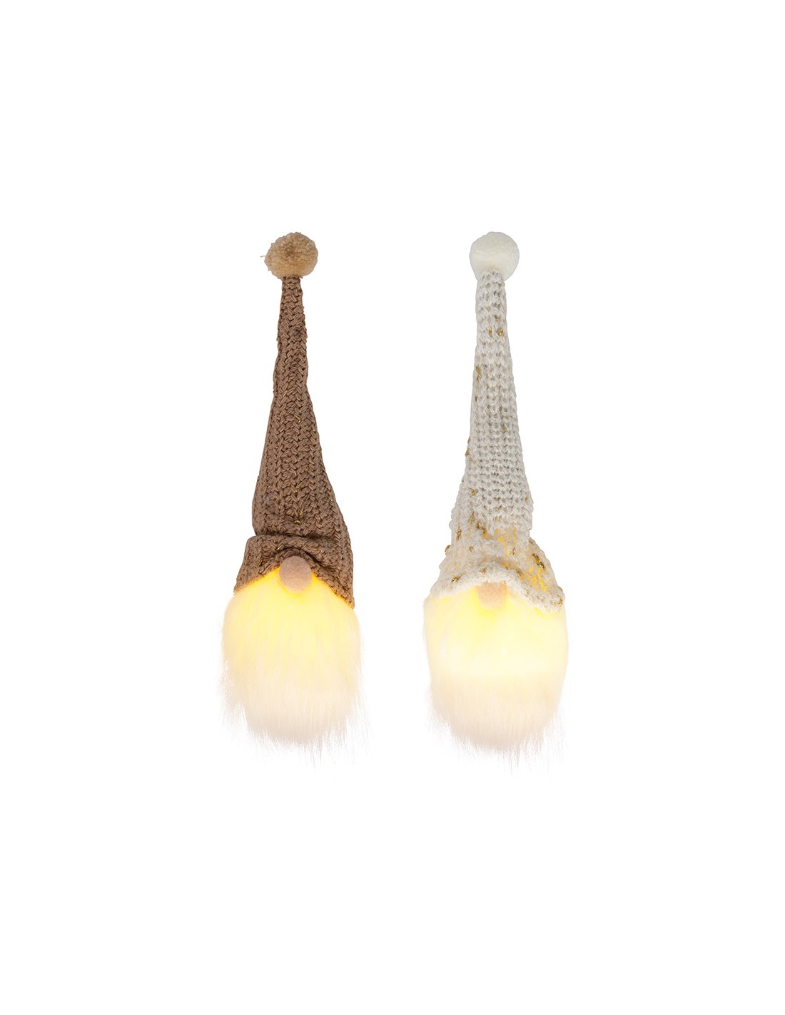Adorno colgante gnomo con luz cálida fija, para uso en interiores, colores surtidos. funciona con pila 3 x lr44 (incluidas), ø6 x 20 cm, presentado en expositor de 20 uds