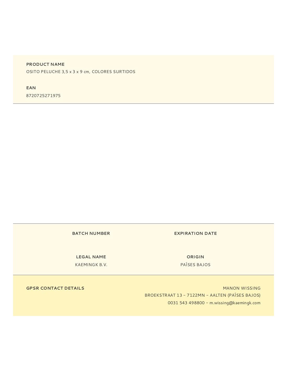 Osito peluche 3,5 x 3 x 9 cm, colores surtidos
