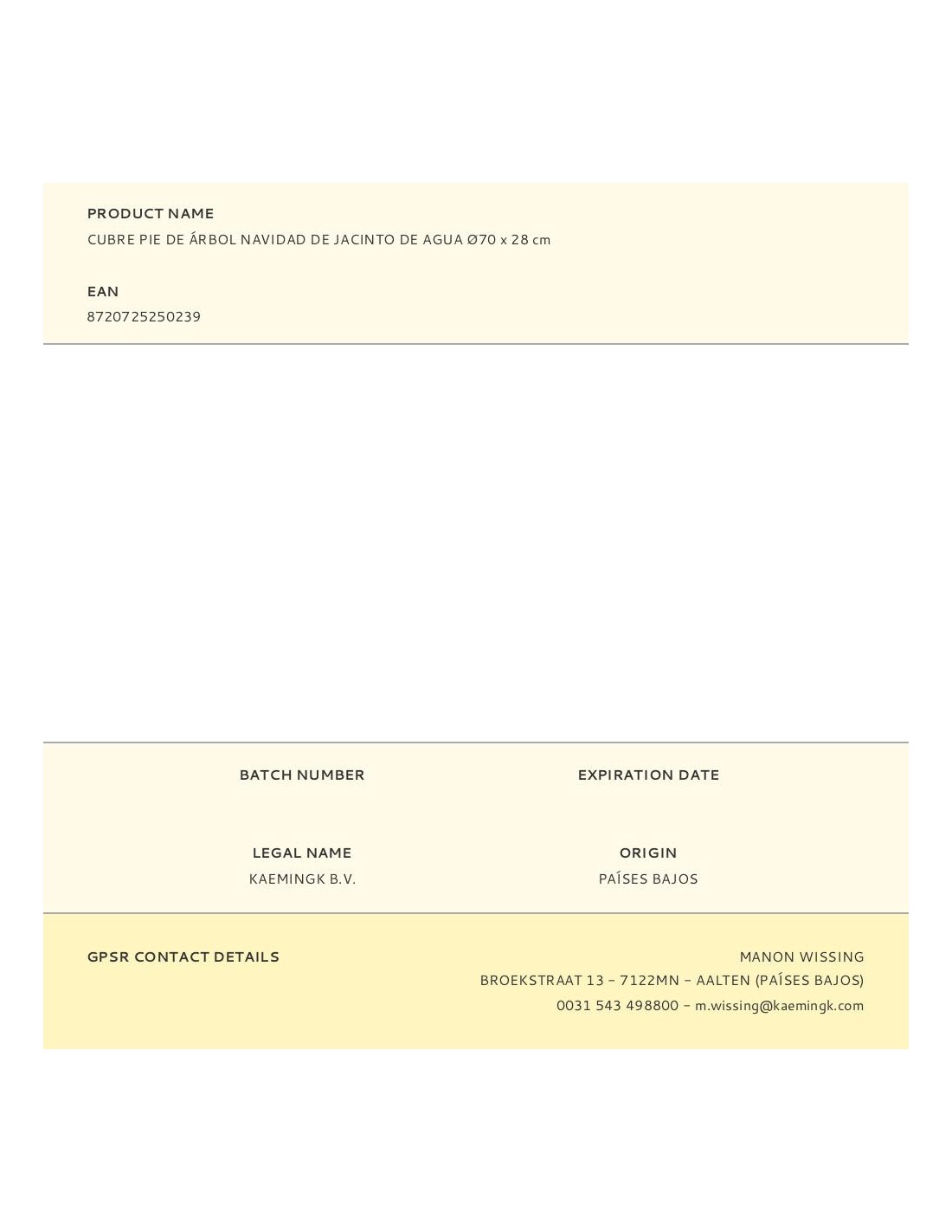 Cubre pie de árbol navidad de jacinto de agua ø70 x 28 cm