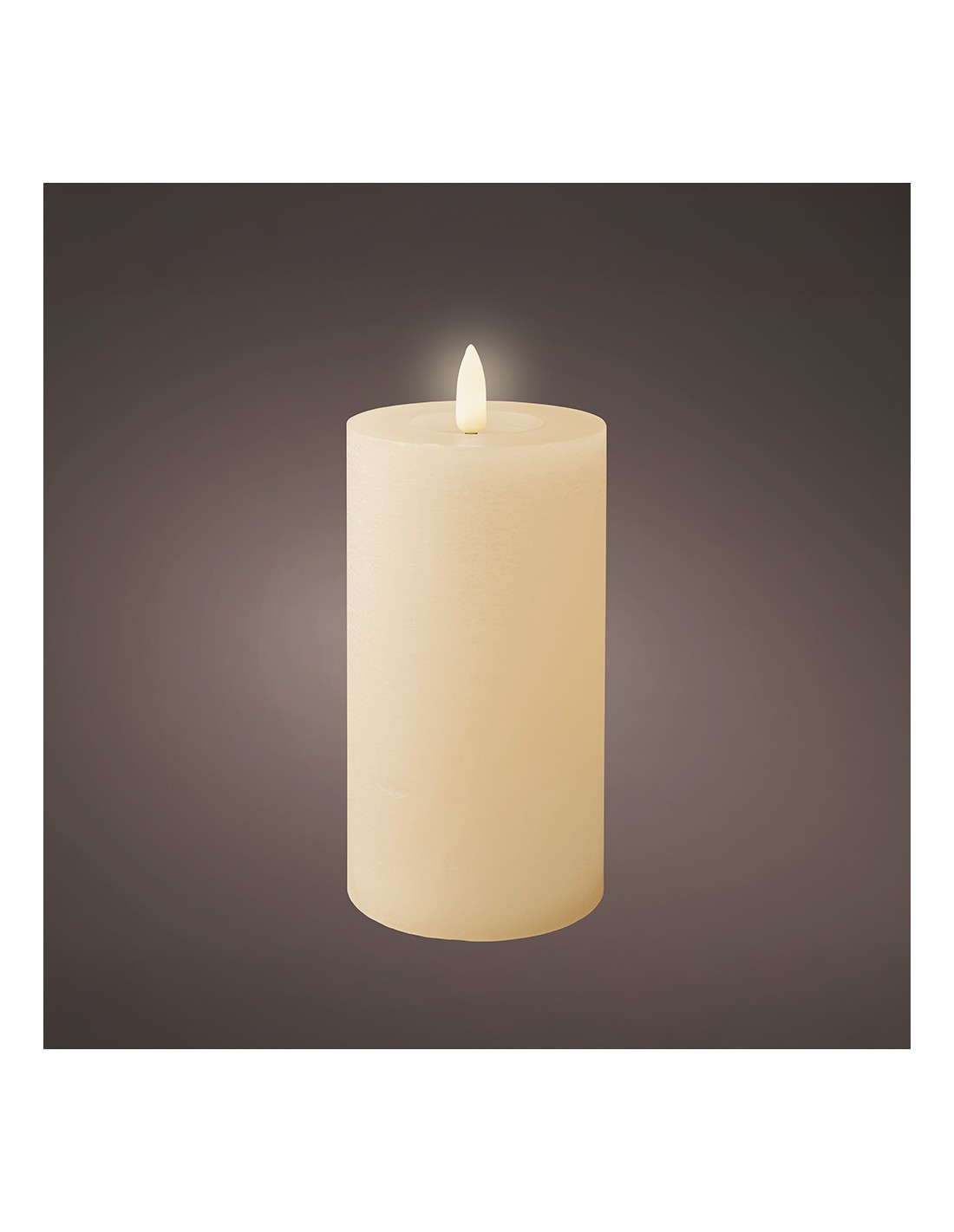 Vela de cera led, efecto llama, color beige, superficie lisa, acabado rústico, medidas: ø7 x 15 cm, uso: interior, color led: luz cálida con temporizador 6 h encendida / 18 h apagada autonomía: 250 h funciona con pilas 2 x aaa (no incluidas)