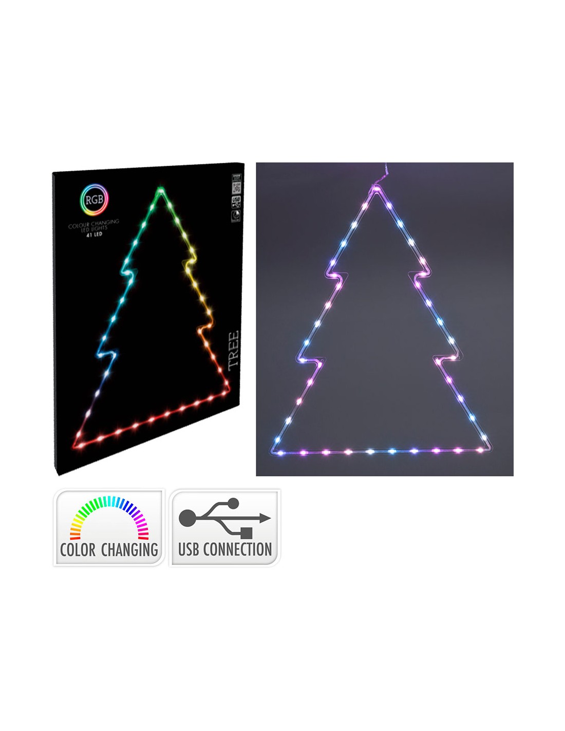 Árbol de navidad led con estructura de color transparente, 41 leds rgb digitales, conector usb de 10 m con controlador, multifunción, material polipropileno 220 - 240 v ~50/60 hz, para interior ip20, dimensiones: 48 x 60 cm