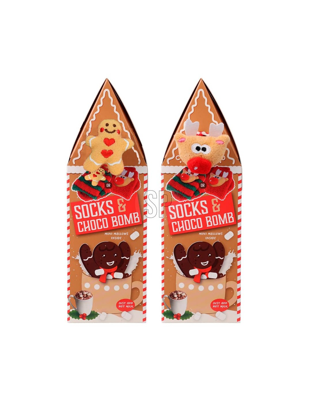Caja navideña, contiene una taza, un par de calcetines y chocolatina, modelo variados