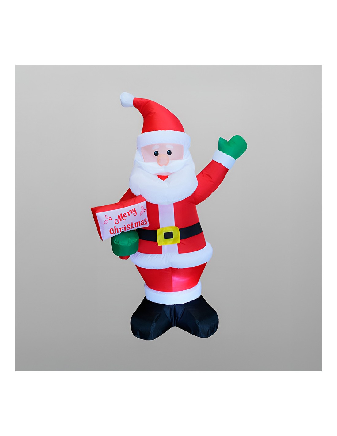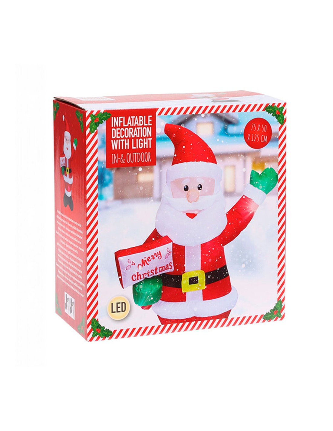 Papa noel inflable con luz led de colores, 12 v, 7,2 w, 220 - 240 v ~50/60 hz, para exterior ip44, material poliéster con revestimiento impermeable, cable alimentación 2 m, contiene 2 amarres y 2 estacas para fijarlo, dimensiones inflado 75 x 50 x 125 cm
