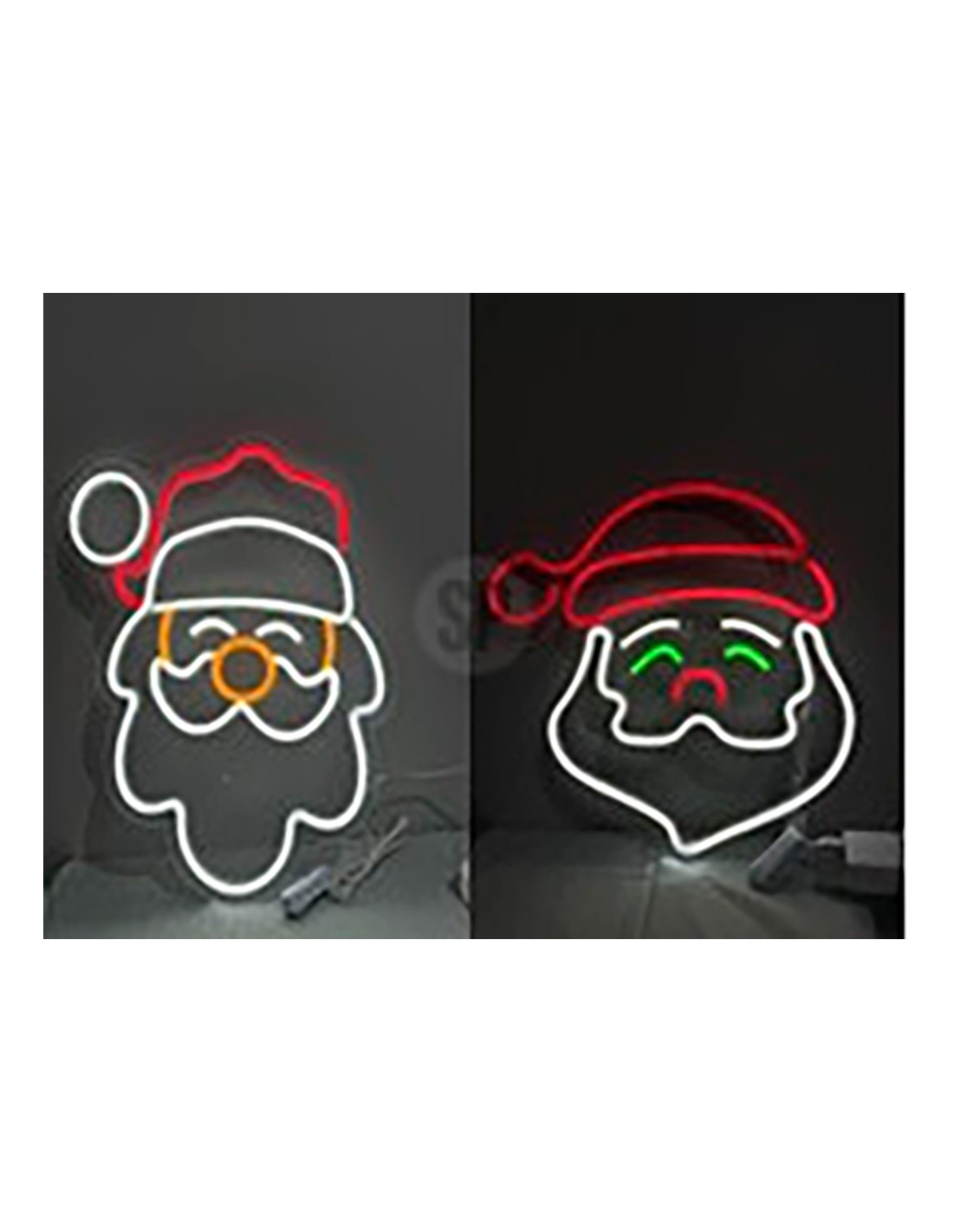 Figura navideña de neón, idonea para colgar, con usb e interruptor de encendido /apagado. cable blanco 2 m. material marco y tiras de pvc, cobre. bateria 1 x cr2032 (incluida). 2 modelos variados de papa noel. dimensiones 40 x 36 cm