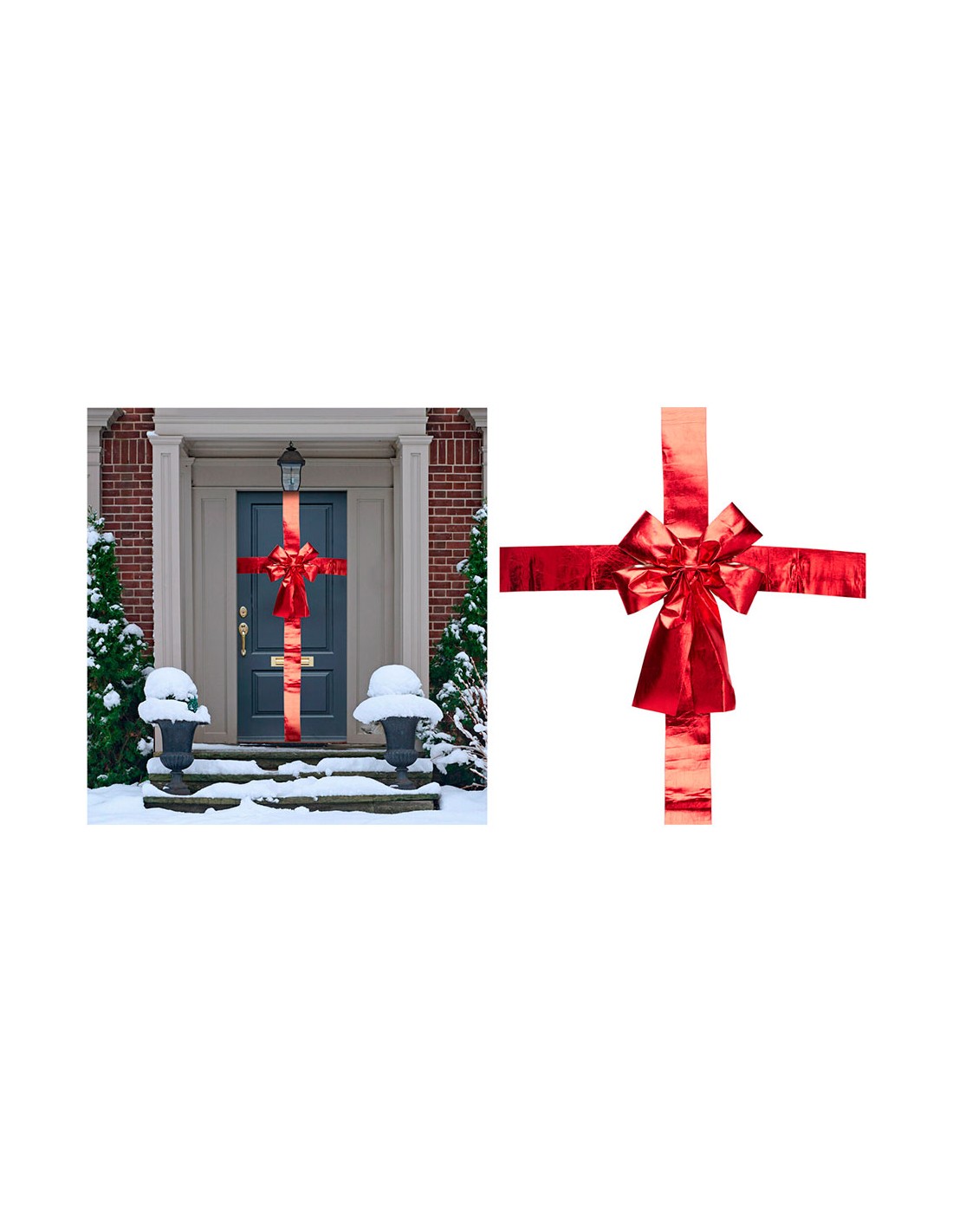 Lazo rojo para puerta, dorso dorado, material poliéster, con velcro para sujetarlo, ancho de la cinta 10 cm, dimensiones del lazo 33 x 42 cm