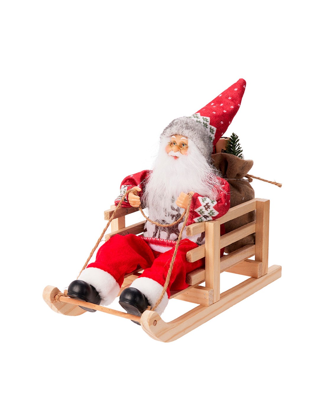 Papa noel en trineo, material poliéster, madera. dimensiones: 15 x 34 x 25 cm