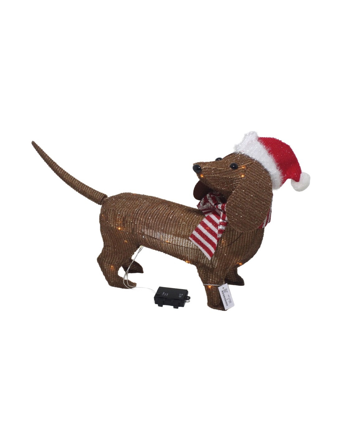Perro marrón con gorro de navidad a pilas, función fija, 40 leds, interior