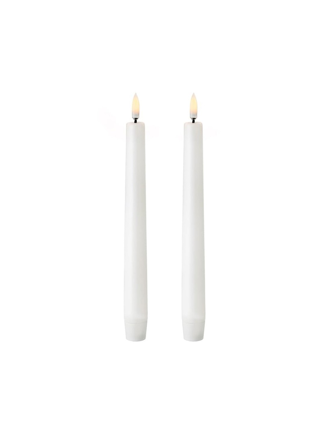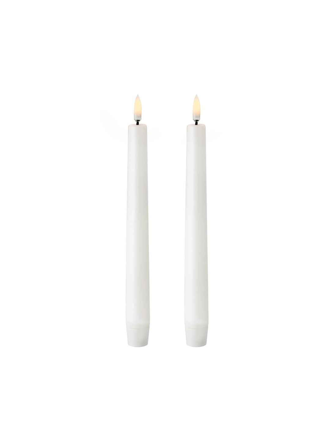 Vela de cera led con efecto llama, color blanco, superficie lisa, medidas: ø2,2 x 24,5 cm. color led: luz cálida, funciona con pilas 2 x aaa (no incluidas), uso: interior con temporizador de 6 h y 18 h de apagado. pack 2 uds