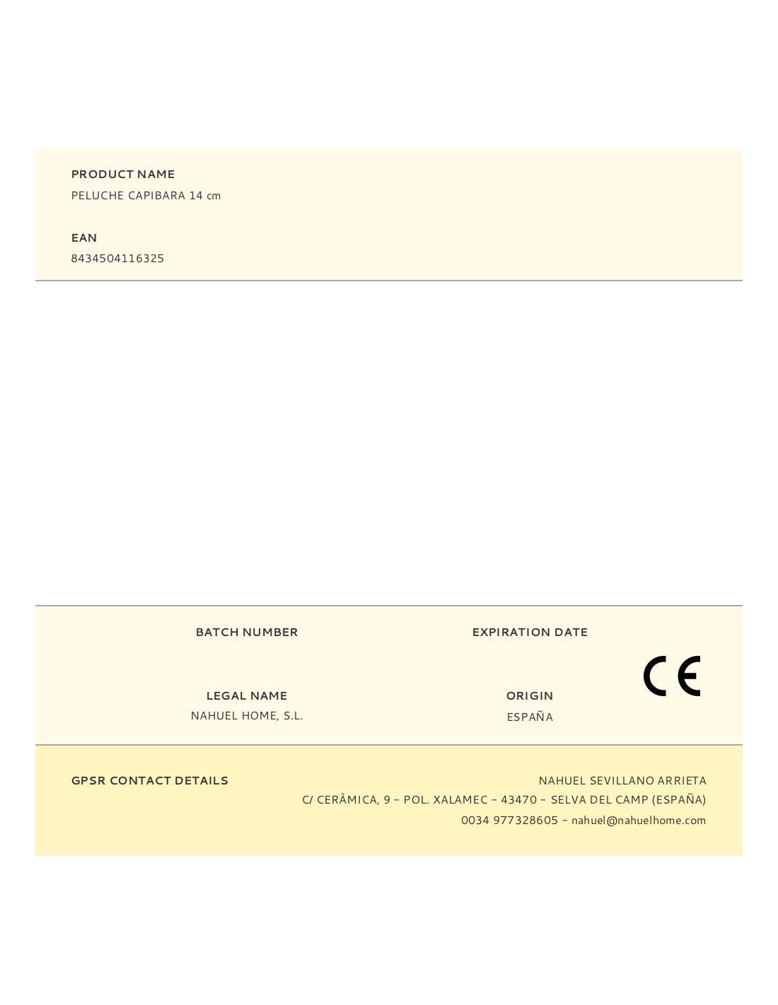 Peluche capibara 14 cm, color marrón, 100% poliéster