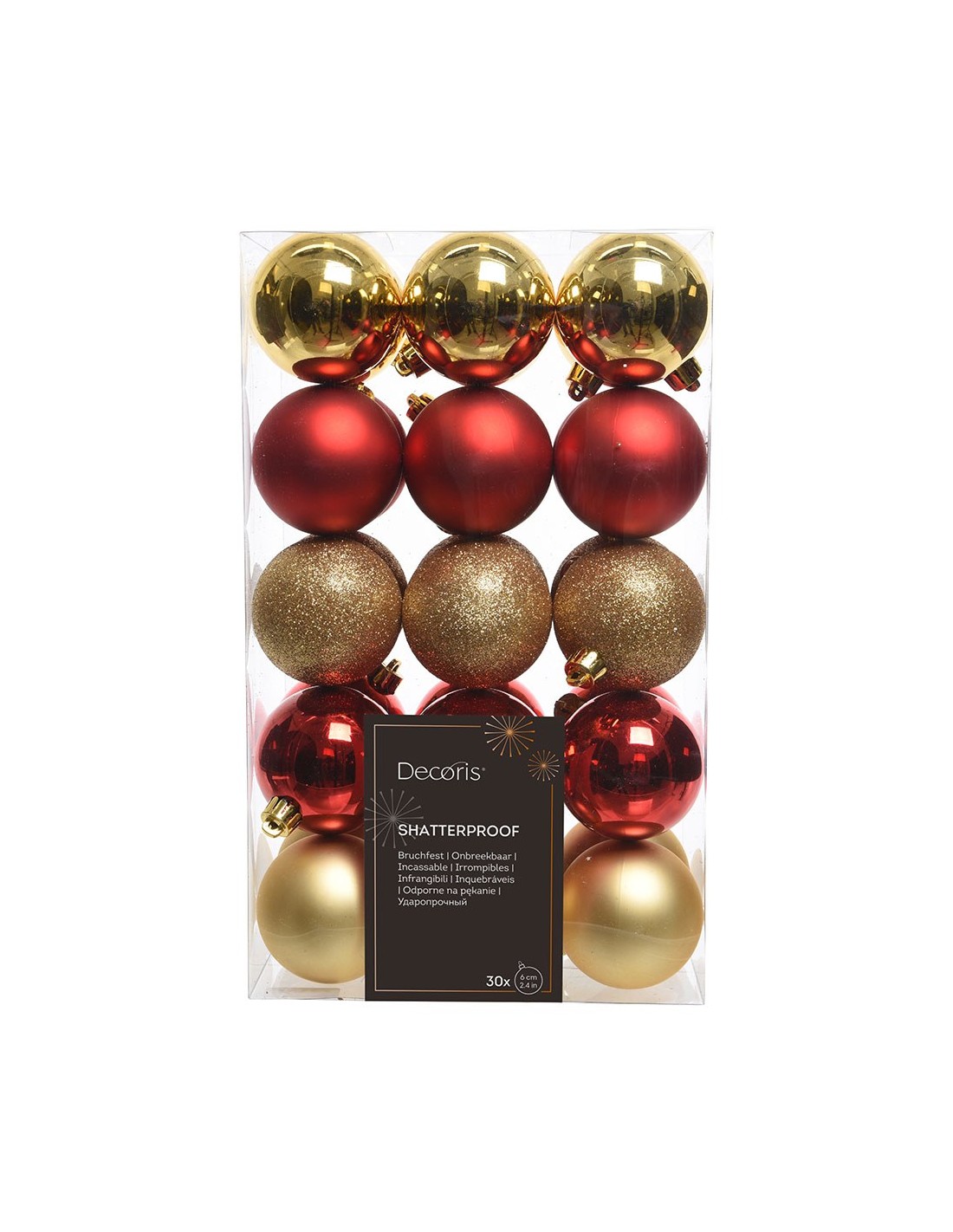 Bolas decoración árbol navidad ø6 cm, rojo y dorado, caja 30 uds