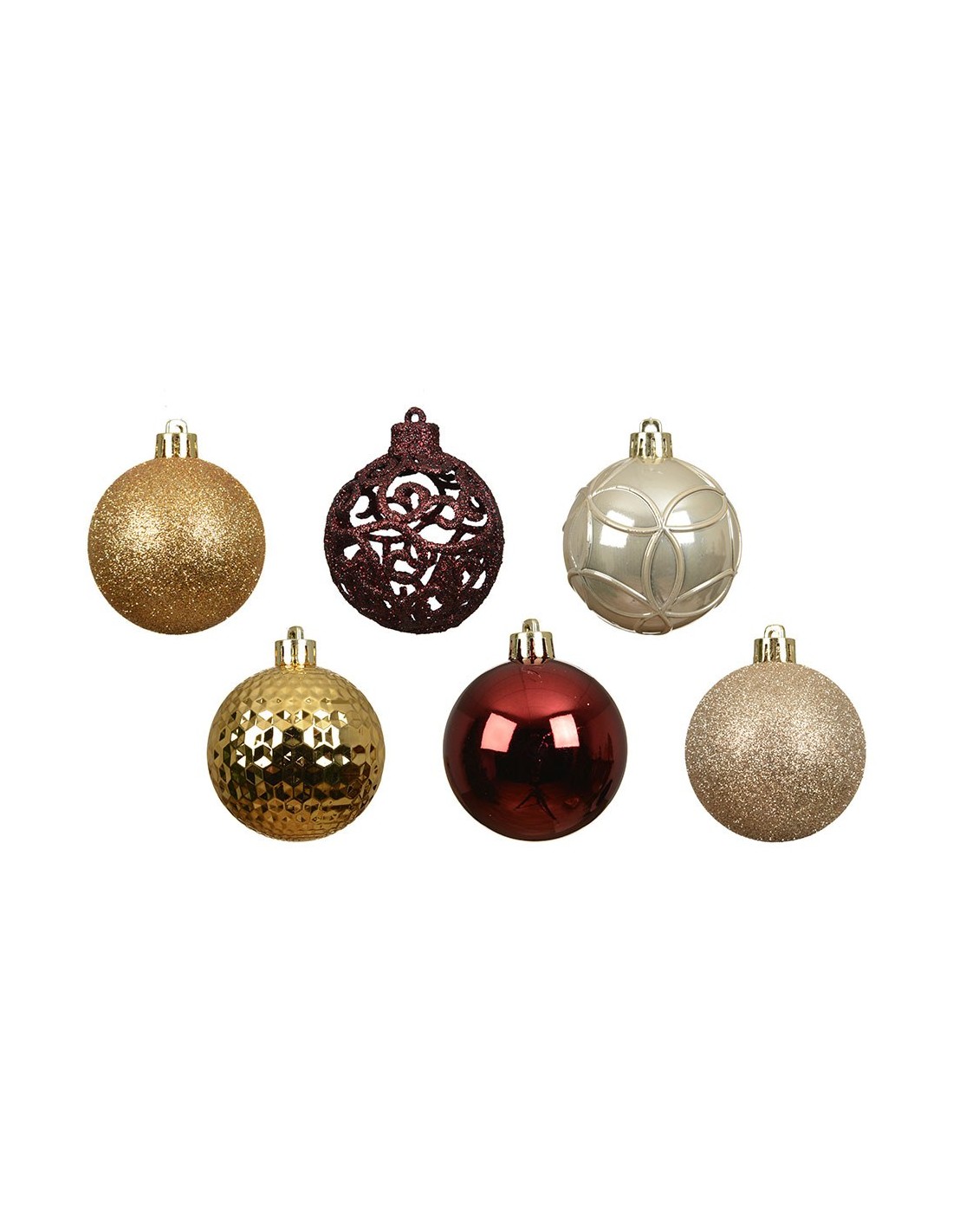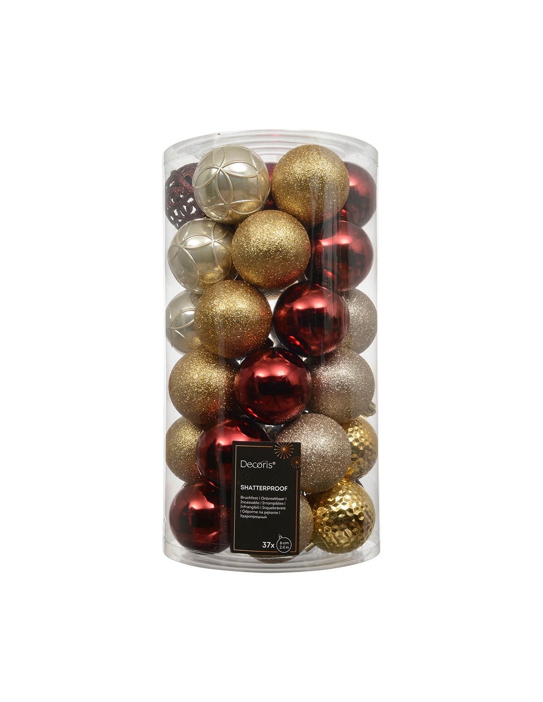 Bolas decoración árbol navidad ø6 cm, rojo y dorado, tubo 37 uds