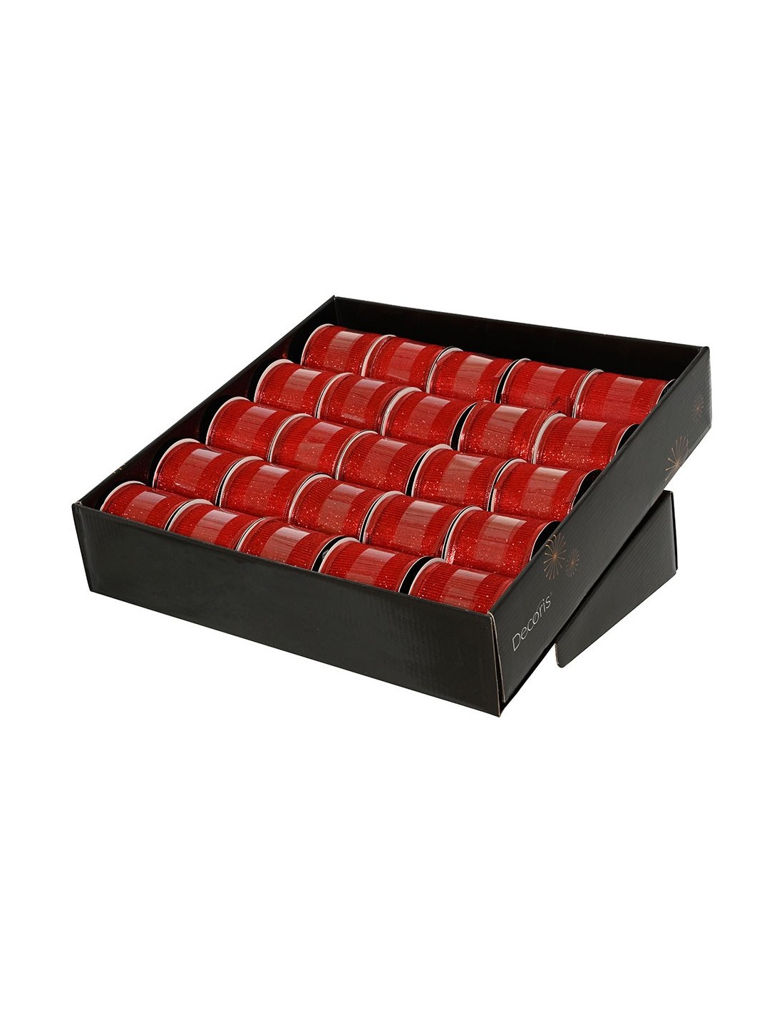 Cinta poliéster roja. medidas: 6,3 x 270 cm. presentado en expositor 25 uds