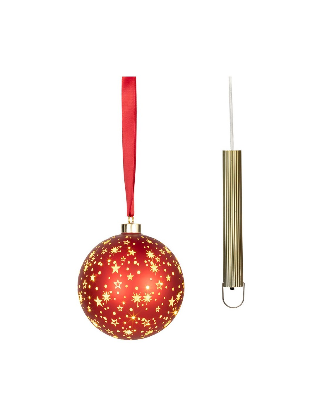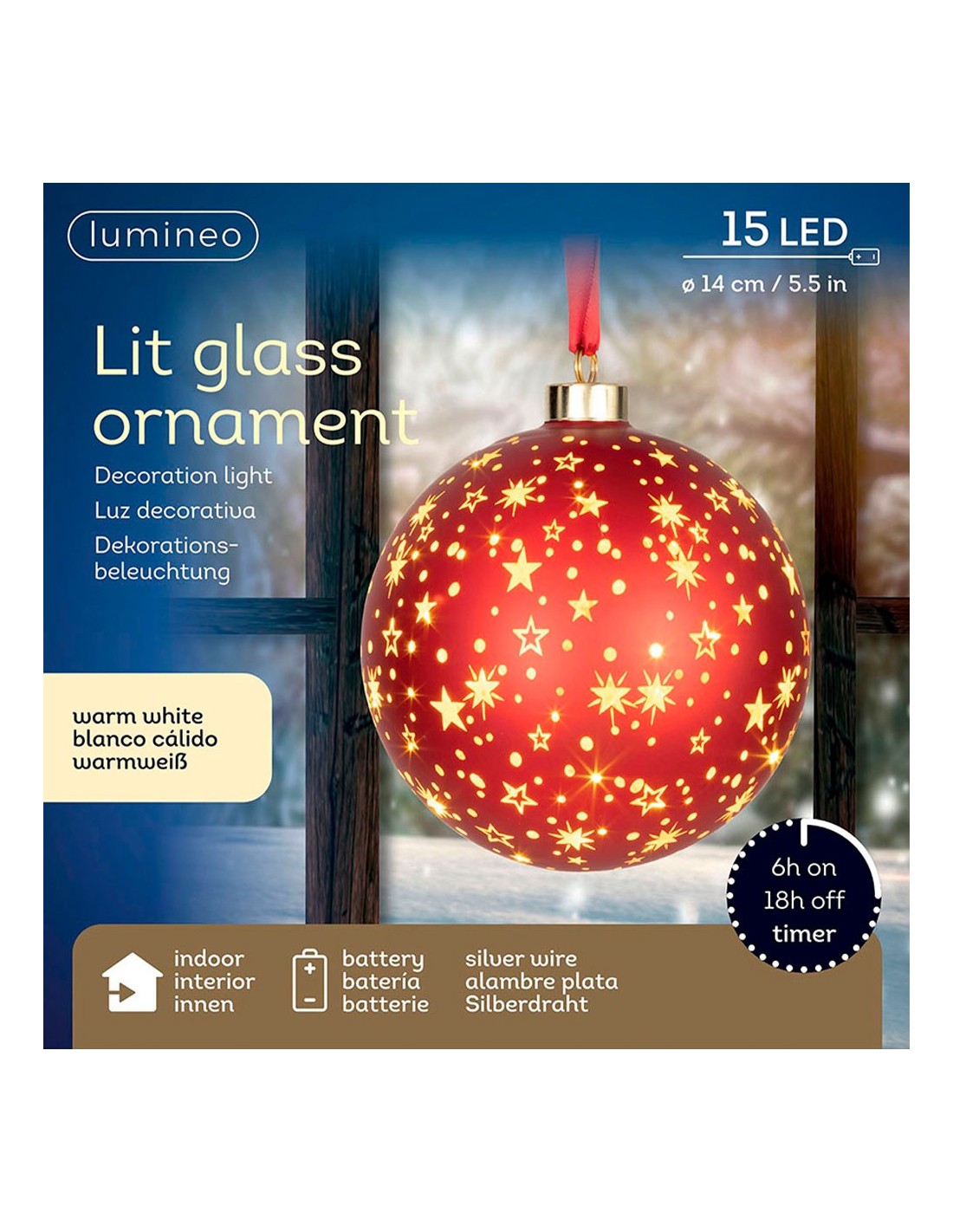 Bola micro led luz cálida, uso interior, a pilas, ø14 cm, roja con alambre plateado, temporizador: 6 h encendido / 18 h apagado