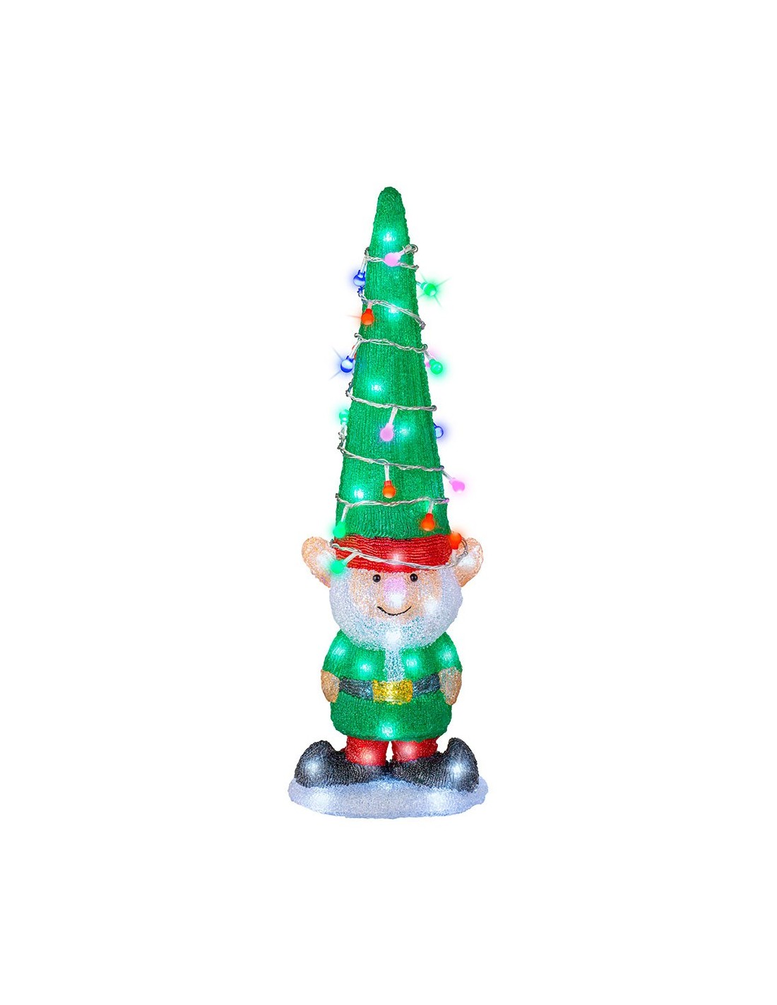 Figura elfo led exterior con luz fija. 60 leds. luz blanca fria. temporizador: 8 h encendido / 16 h apagado. funciona con transformador 31v