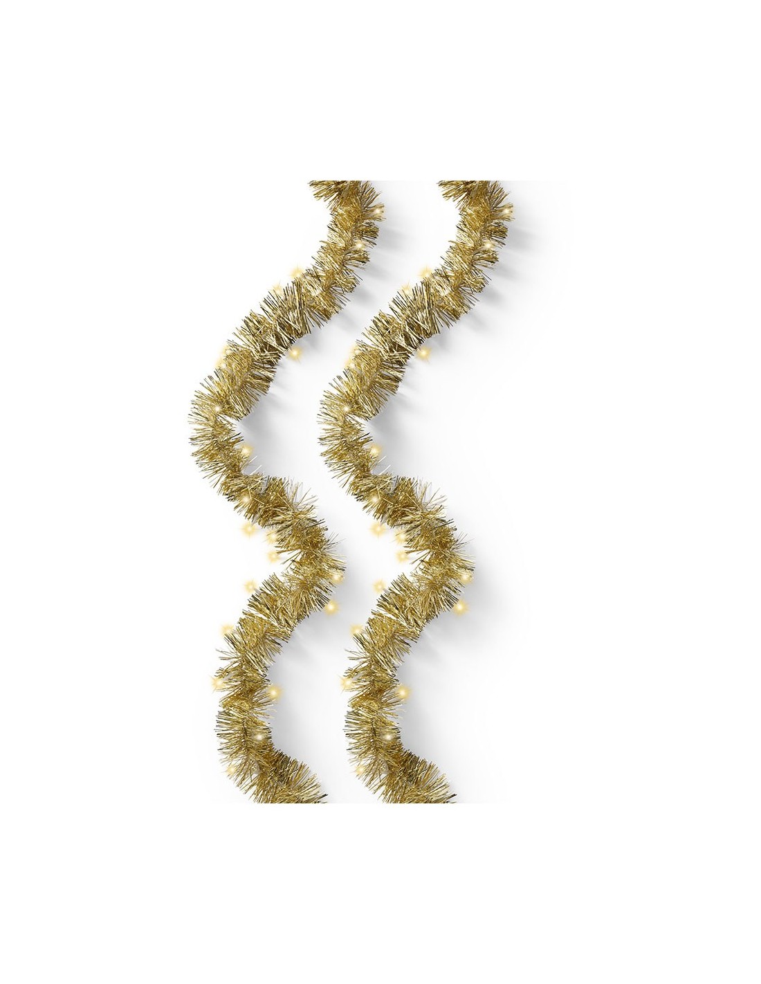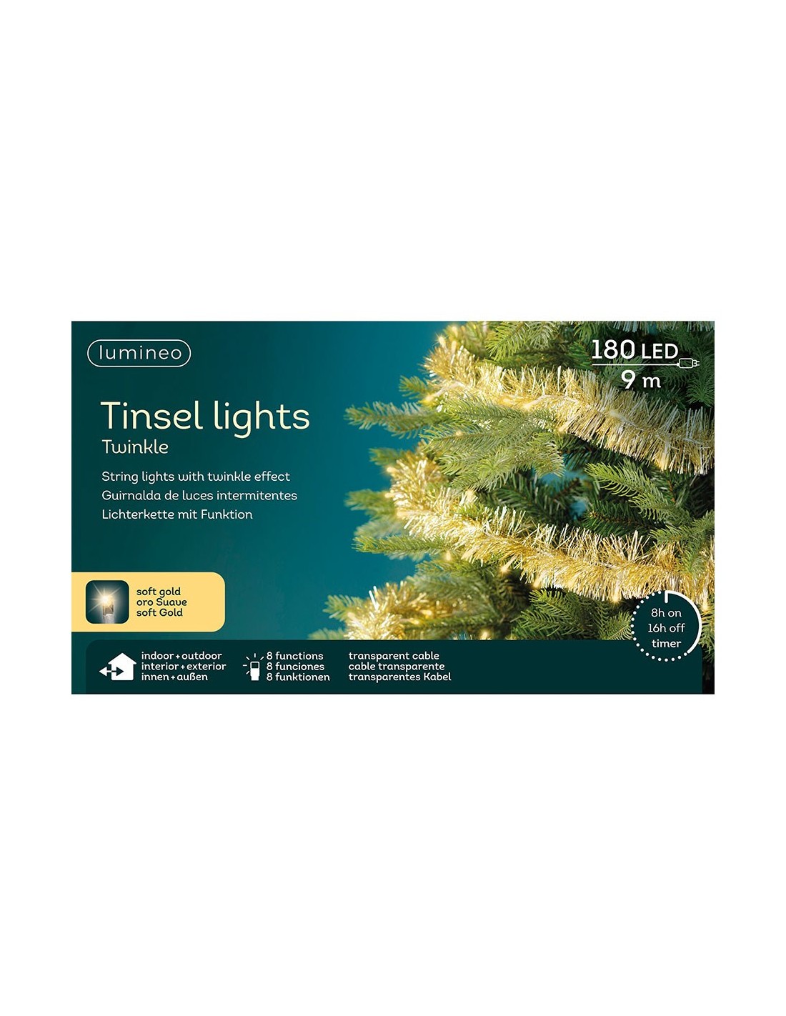 Espumillón dorado con guirnalda led intermitente, uso exterior, 8 funciones, oro suave, cable transparente, 180 leds, 9 m