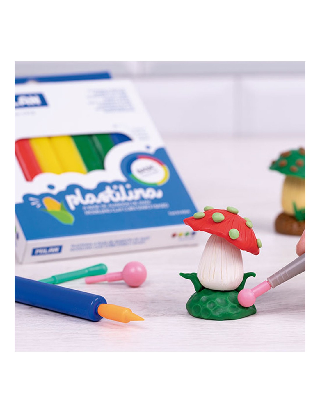 Caja con 4 barras de plastilina de colores 330g milan. caja con 4 barras de plastilina de colores a base de almidón de maíz (sin gluten). fácilmente moldeable, se mantiene suave y no se seca en el envase original. colores rojo, amarillo, verde y azul. peso aproximado de cada barra 82g colores mezclables.