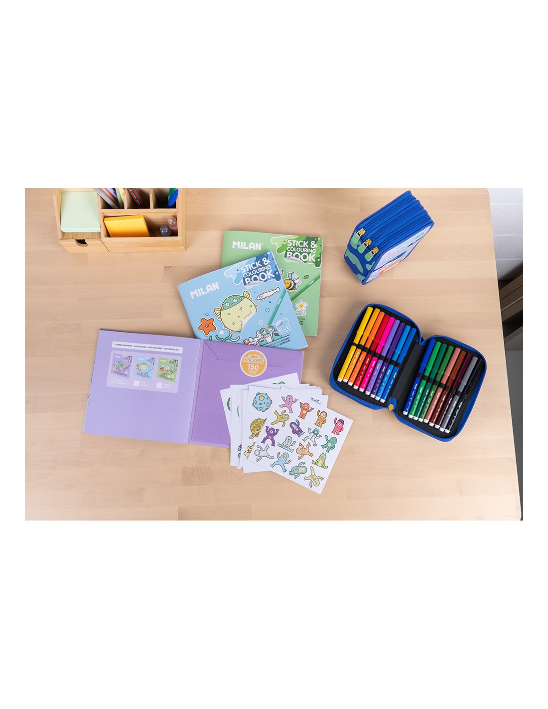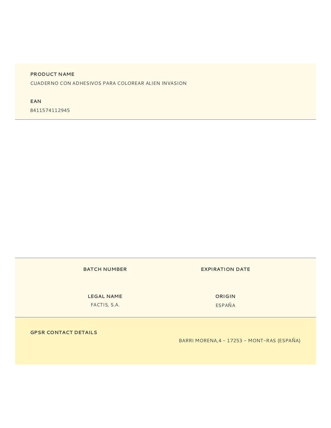Contiene 16 páginas con dibujos de extraterrestres, estrellas, planetas y naves para inventar viajes espaciales, además de 150 adhesivos para pegar, colorear y crear composiciones propias. incluye un sobre interior con las pegatinas. recomendable a partir de 4 años. medidas: 21 x 21 cm. papel de 140 g procedente de plantaciones sostenibles