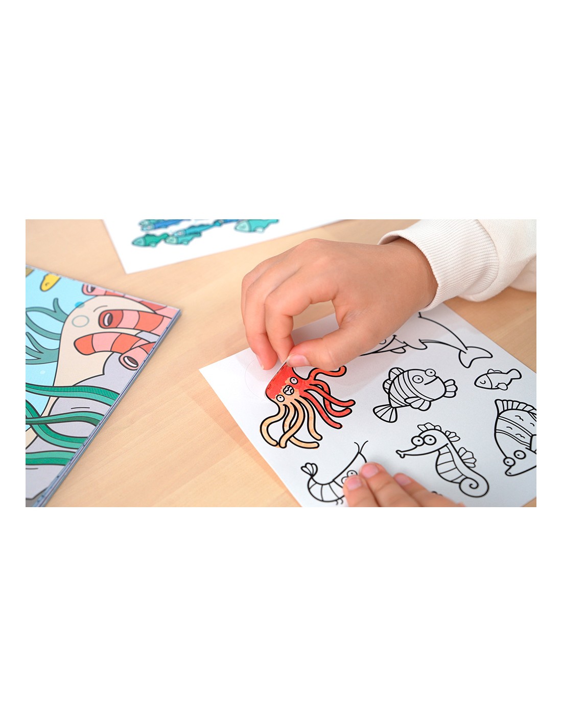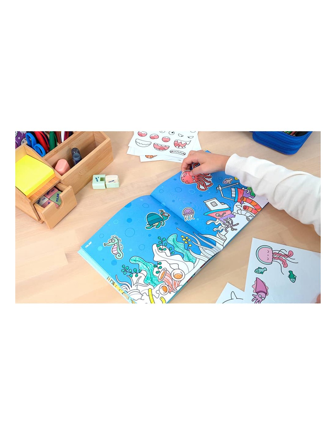 Contiene 16 páginas con dibujos de fauna marina para descubrir la diversidad de animales del mar, además de 150 adhesivos para pegar, colorear y crear composiciones propias. incluye un sobre interior con las pegatinas. recomendable a partir de 4 años. medidas: 21 x 21 cm. papel de 140 g procedente de plantaciones sostenibles
