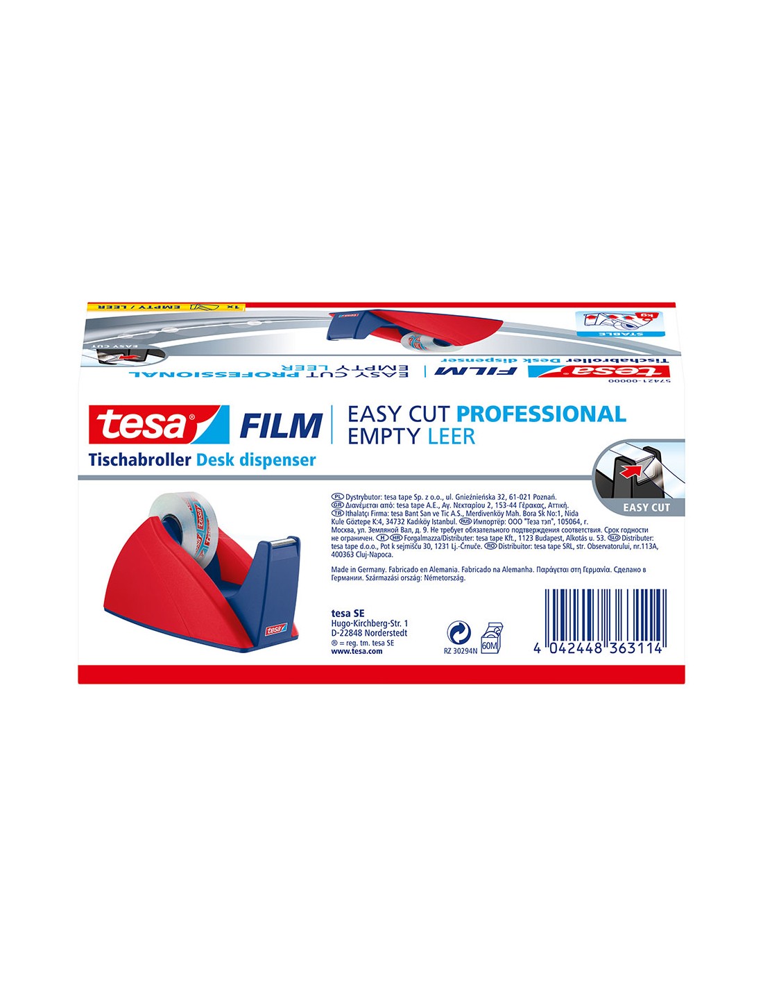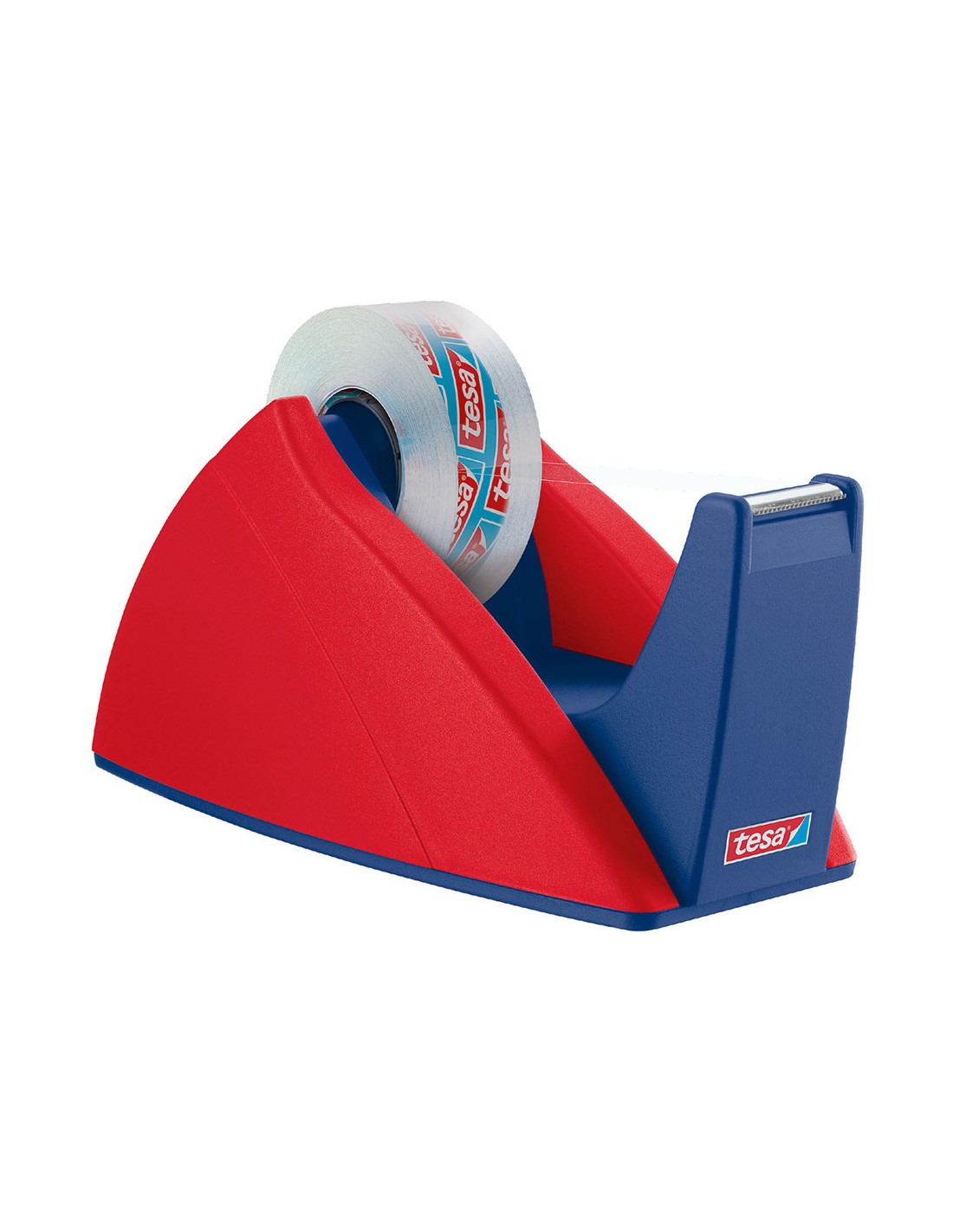 Portarollos easy cut rojo/ azul para rollos de 33 m, desenrollado limpio, se mantiene estable, recargable, cinta adhesiva no incluida