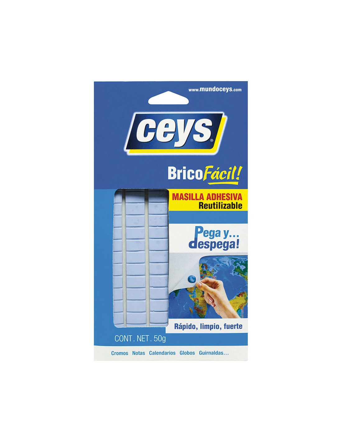 Masilla adhesiva reutilizable, bricofácil, 50 g, adhiere fuertemente en cromos, globos, guirnaldas, etc. pega y despega fácilmente