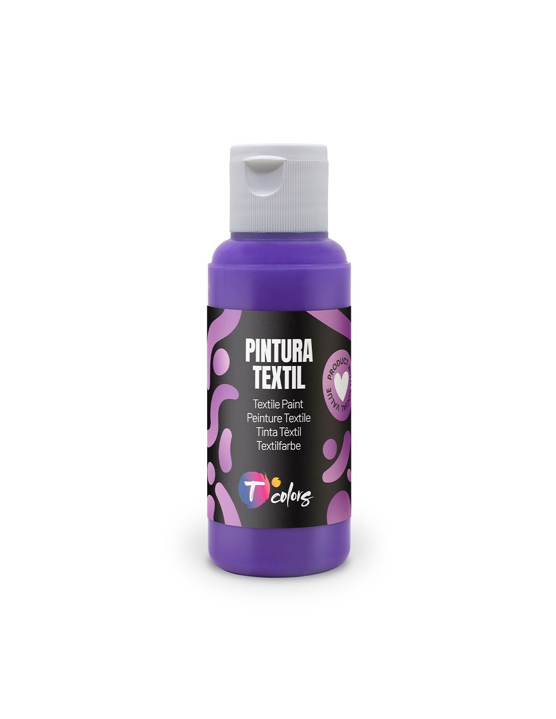 Pintura textil violeta alta adherencia y flexibilidad, cubre cualquier tono, aplicación con rodillo, pincel, aerógrafo,...80 ml