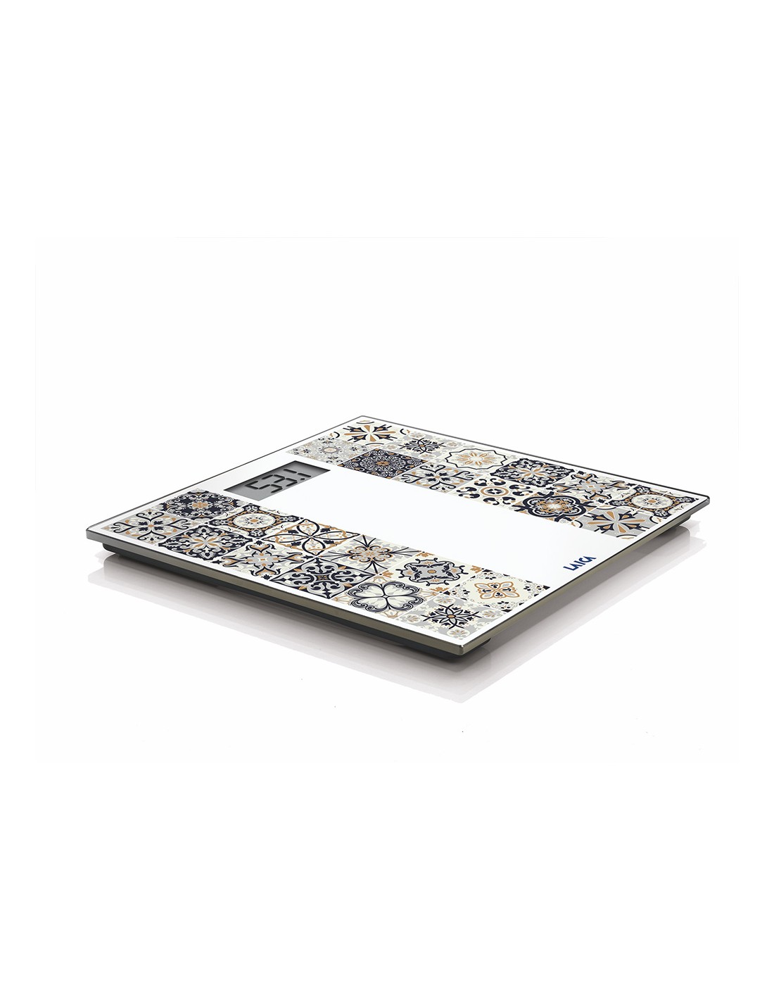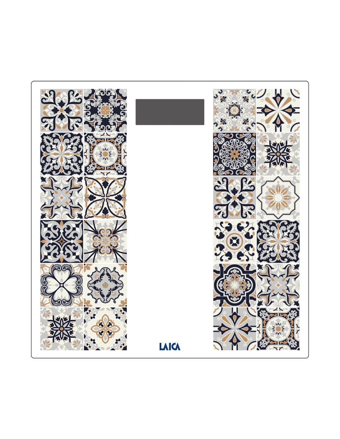 Báscula de baño electrónica con batería recargable de 3,7 v 250 mah, fabricada en cristal templado de 6 mm. carga máxima: 180 kg. modelo diseño italiano estampado marrón, cable usb incluido, 30,5 x 30,5 x 2,5 cm