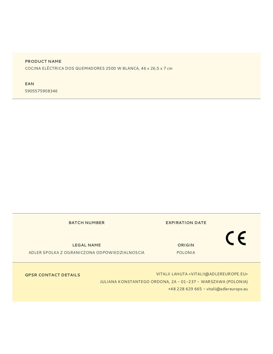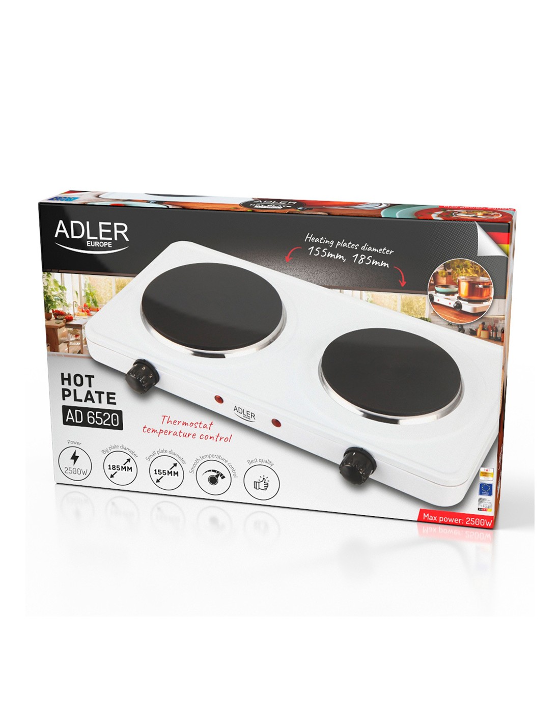 Cocina eléctrica dos quemadores 2500 w blanca, 46 x 26,5 x 7 cm