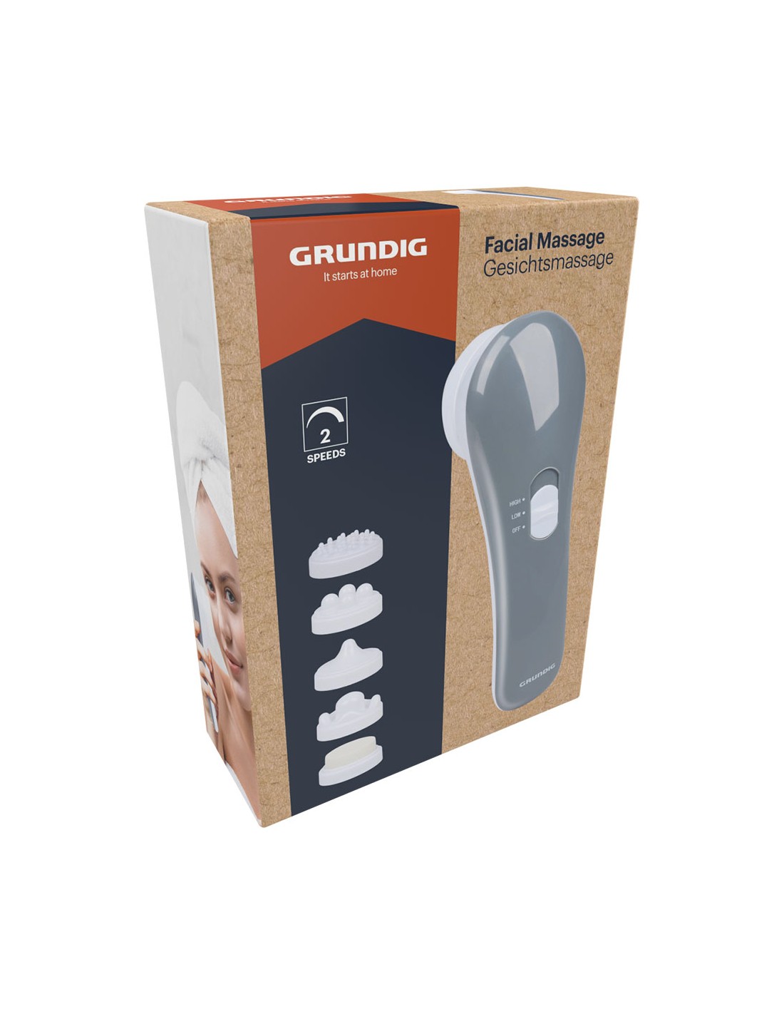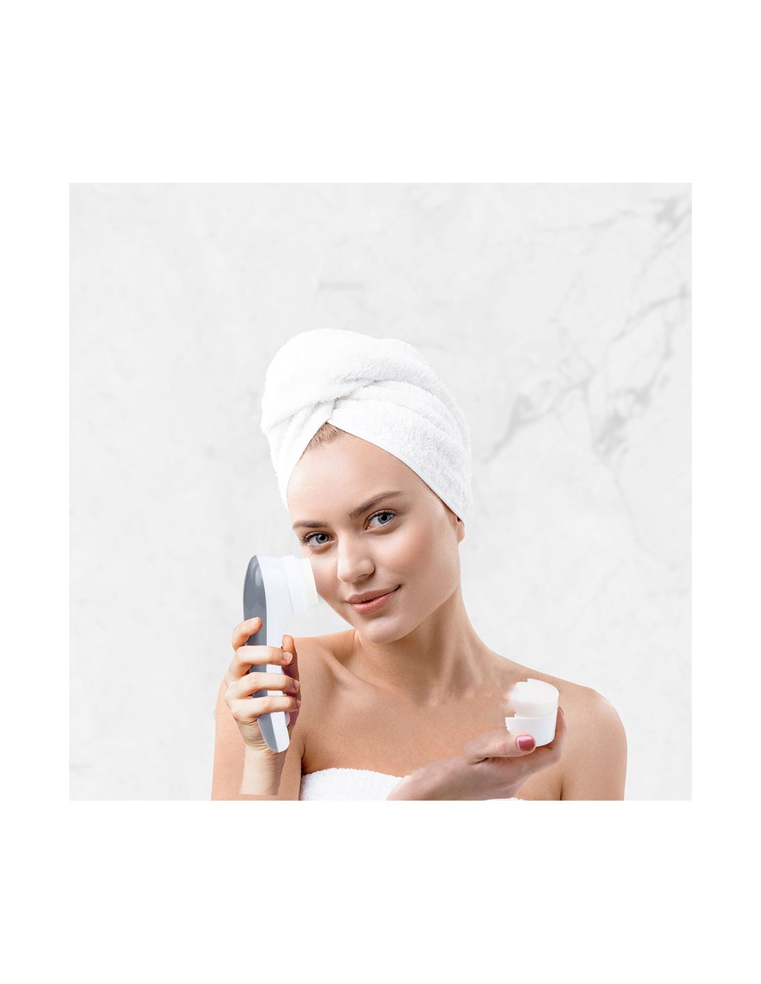 Masajeador facial con 5 cabezales extraíbles y 2 velocidades, funciona con pilas: 2 x aa (no incluidas), color gris y blanco, medida: 5,5 x 4,2 x 16,5 cm