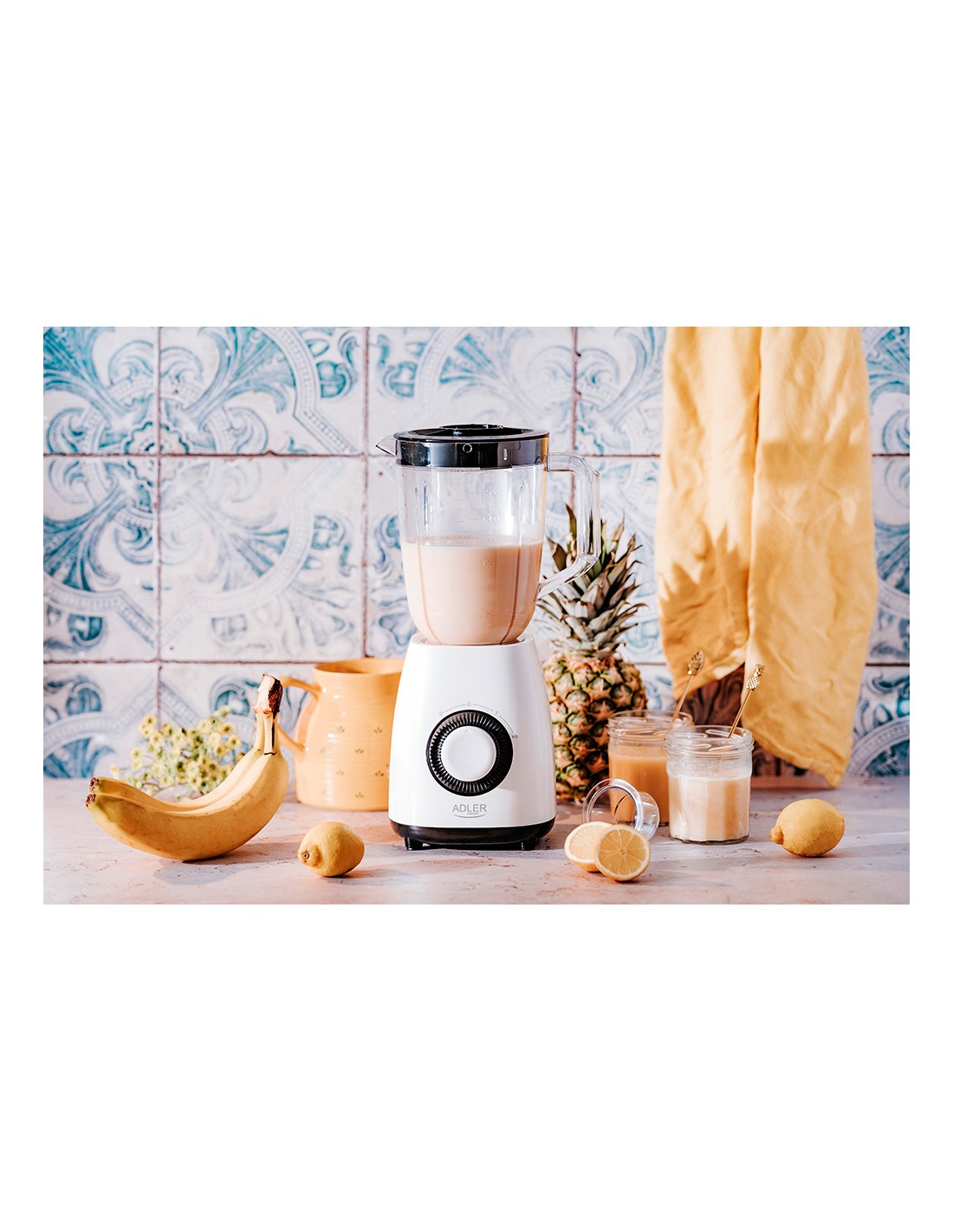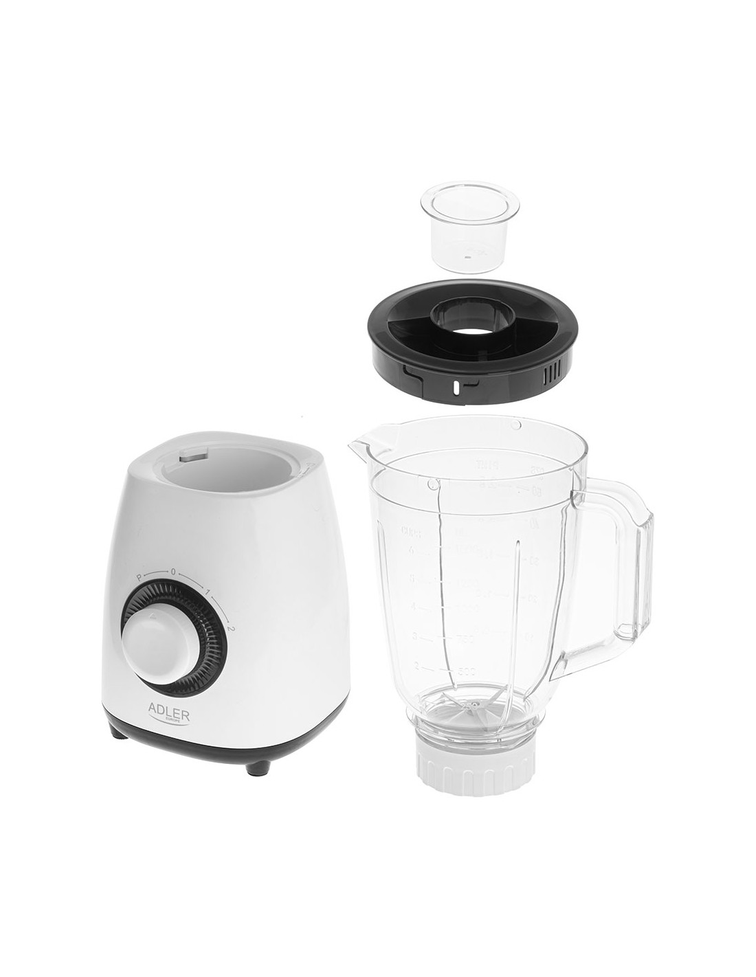 Batidora de vaso ad 4085 1000 w 1,5 l jarra ligera de plástico as libre de bpa, cuchilla acero inoxidable con cuatro hojas, función pulsación, dos velocidades: máximo 16000 y máximo 20000 rpm, carcasa plástico pp, tapa con vaso medidor extraíble de 64 ml, módulo de corte desmontable para su limpieza, soportes antideslizantes, protección sobrecalentamiento longitud de cable 120 cm 220-240 v~50-60 hz 15 x 19 x 37 cm