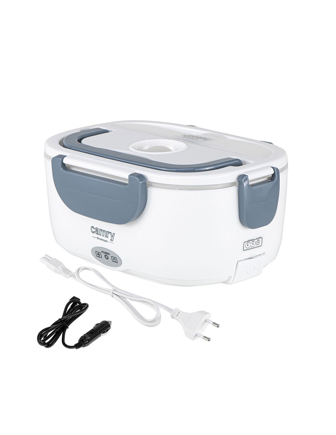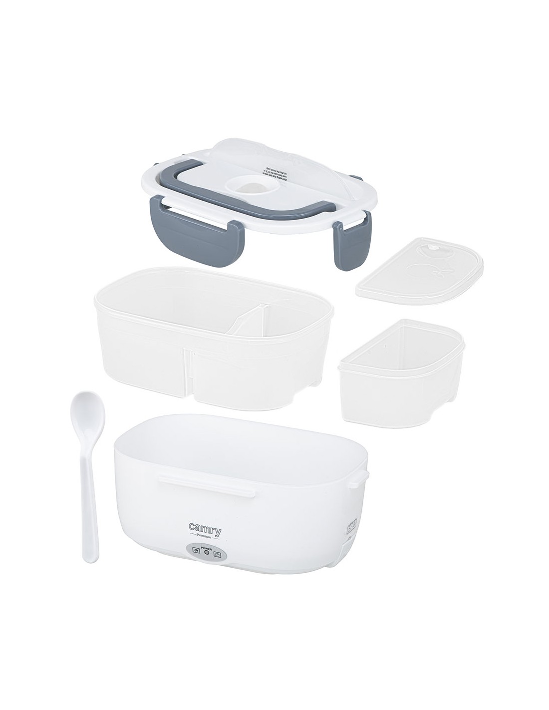 Fiambrera eléctrica cr 4483 1 l alimentación al coche 12 v o a la red 220 v calienta hasta 50°c y mantiene la calor, dos cámaras, recipiente interior extraíble con tapa, sello de seguridad, mango plegable, cuchara incluida, enchufe para coche y para red incluidos 220-240 v~50-60 hz potencia nominal 40 - 45 w, potencia máxima 50 w, dc 12 v, potencia nominal 45 w 23 x 16,5 x 10,5 cm