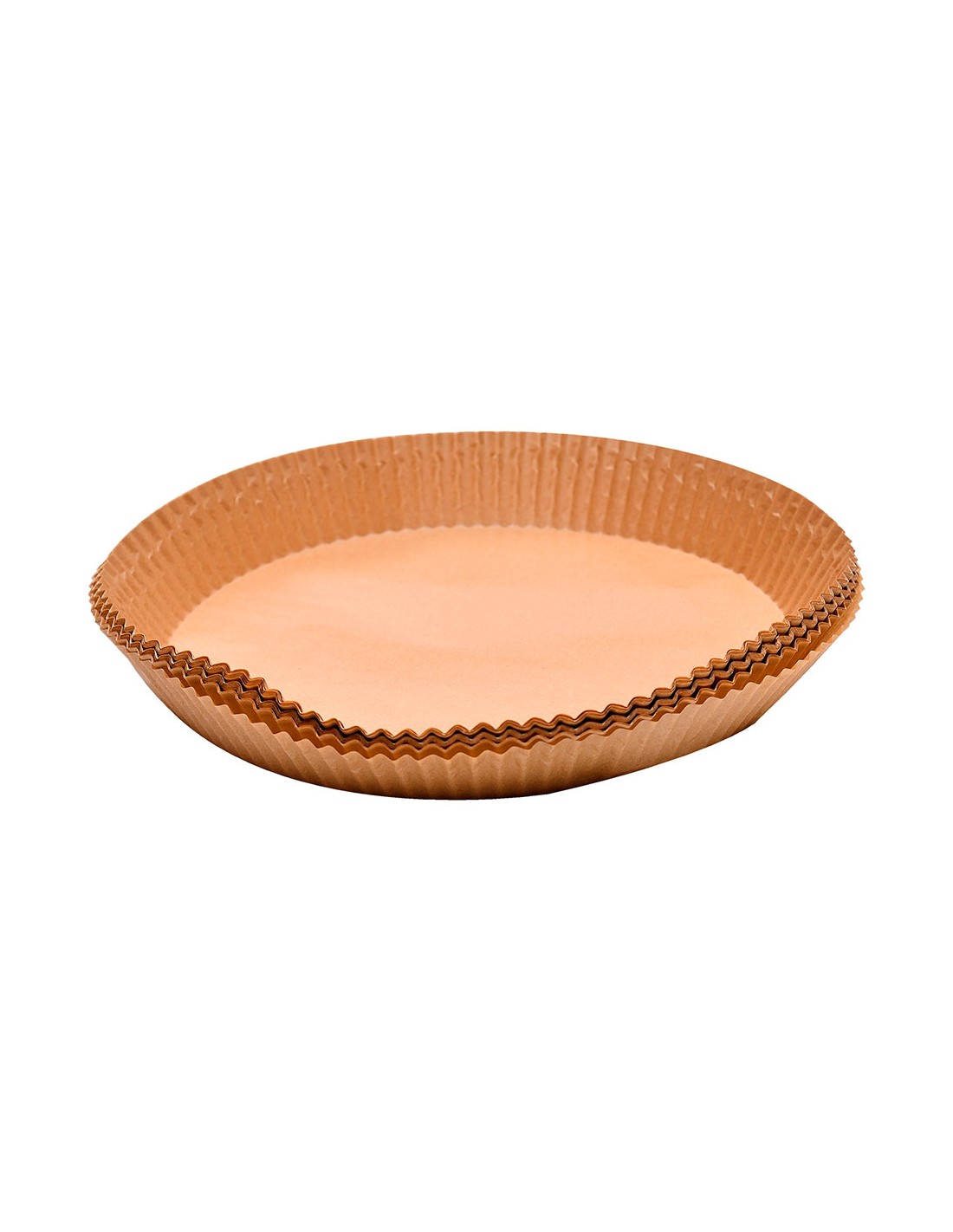 Bandeja redonda de papel para freidora de aire, marrón. 50 uds, medidas ø26 x 4,5 cm