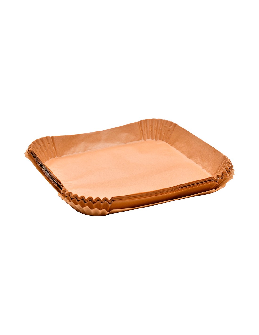 Bandeja cuadrada de papel para freidora de aire, marrón. 50 uds, medidas ø26 x 26 x 4,5 cm