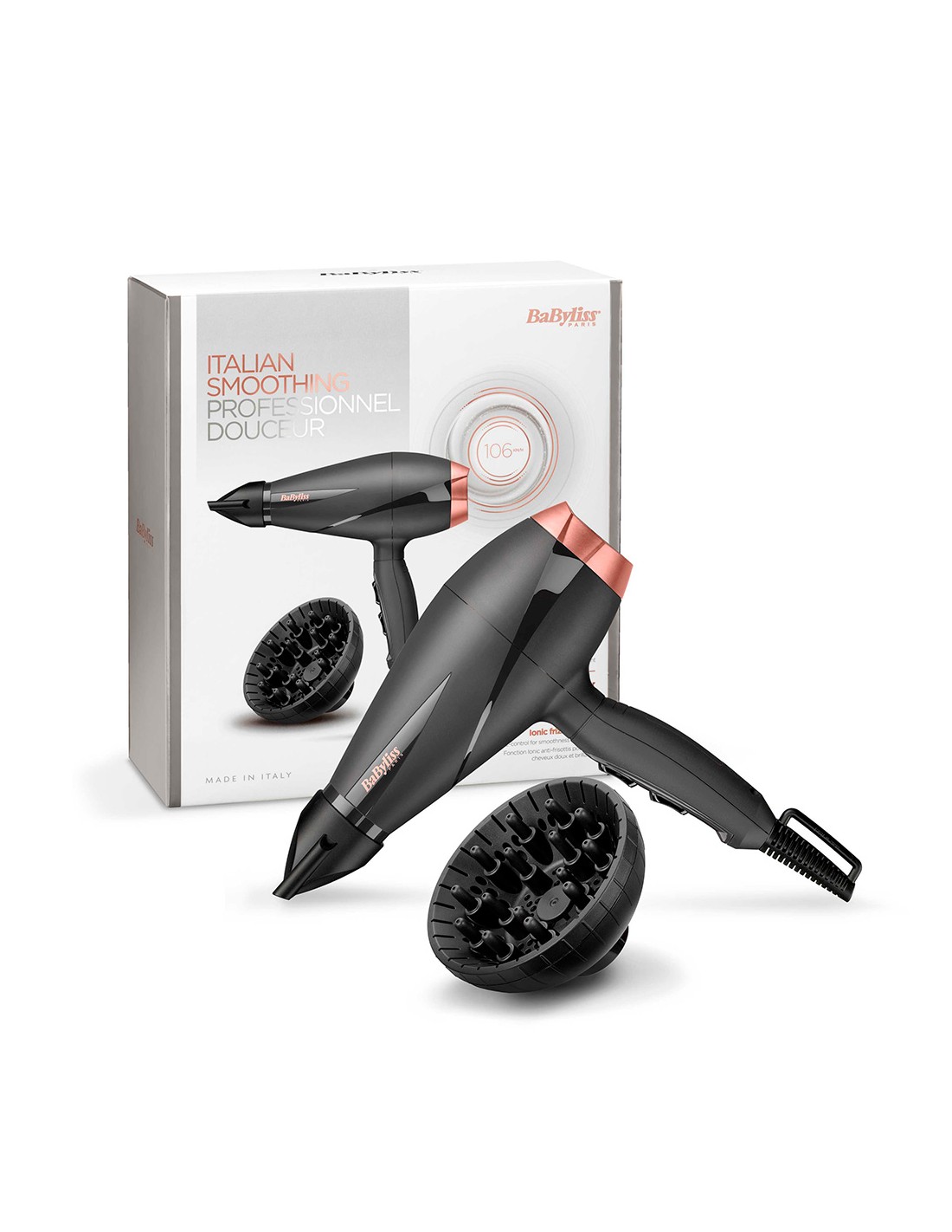 Secador de pelo smooth pro 2100 w con motor ac de larga duración, genera un flujo de aire de 106 km/h para un secado rápido y eficiente. dispone de 2 ajustes de temperatura y velocidad, además de una función de aire frío para fijar el peinado. su tecnología iónica neutraliza la electricidad estática, dejando el cabello suave y sin frizz. incluye una boquilla concentradora estrecha para alisado, un difusor para rizos definidos y un filtro trasero desmontable para una fácil limpieza. cable de 2,8 m