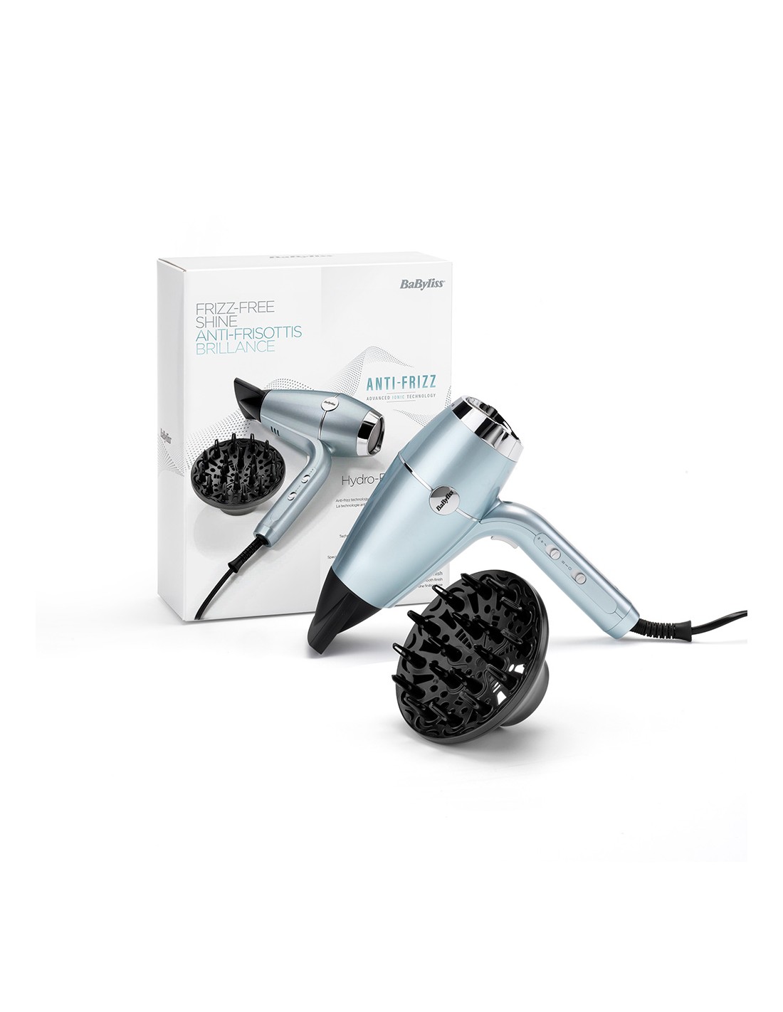 Secador de pelo hydro fusion 2100 w, color azul, con tecnología antiencrespamiento que elimina el frizz e hidrata el cabello durante el secado, gran rendimiento en el flujo de aire para un secado ultrarápido, luz indicadora iónica, 3 ajustes de temperatura, 2 velocidades, botón de aire frío, peso ligero, boquilla concentradora fina, difusor grande, filtro trasero extraíble y cable giratorio de 2,5 m