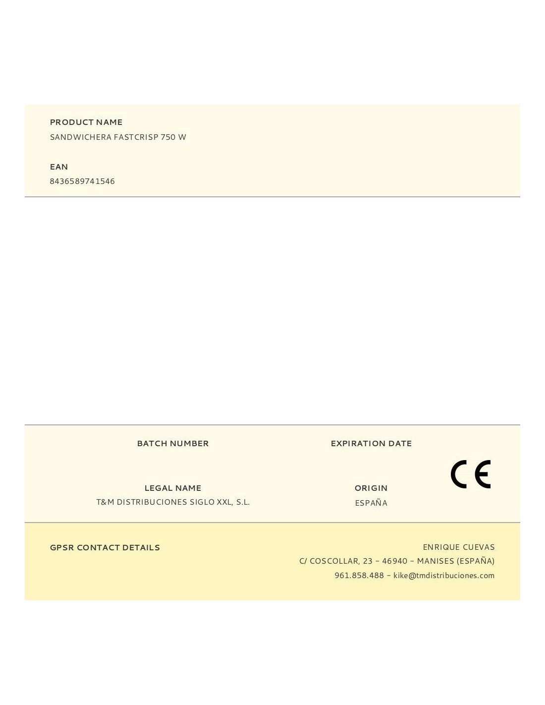 Sandwichera fastcrisp 750 w. placa de parrilla continua y control de temperatura, diseño funcional: asa de tacto frío, luz indicadora de funcionamiento y almacenamiento vertical revestimiento antiadherente fácil de limpiar. almacenamiento integrado de cable. dimensiones: 21 x 22 x 8 cm dimensiones parrilla: 19 x 10 cm