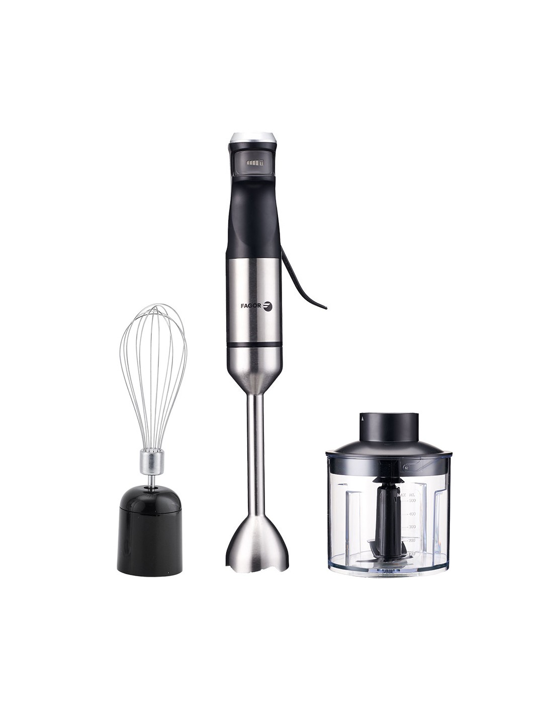 Batidora de mano divamix steel 1500 w. velocidad de hasta 15.000 rpm. control regulable de velocidad con pantalla led y función turbo. material del cuerpo: abs y acero inoxidable. material de cuchillas: acero inoxidable. accesorios incluidos: varilla batidora con cuchilla de 2 hojas, varilla mezcladora, picadora de 500 ml con cuchilla de 2 hojas y vaso medidor de 700 ml