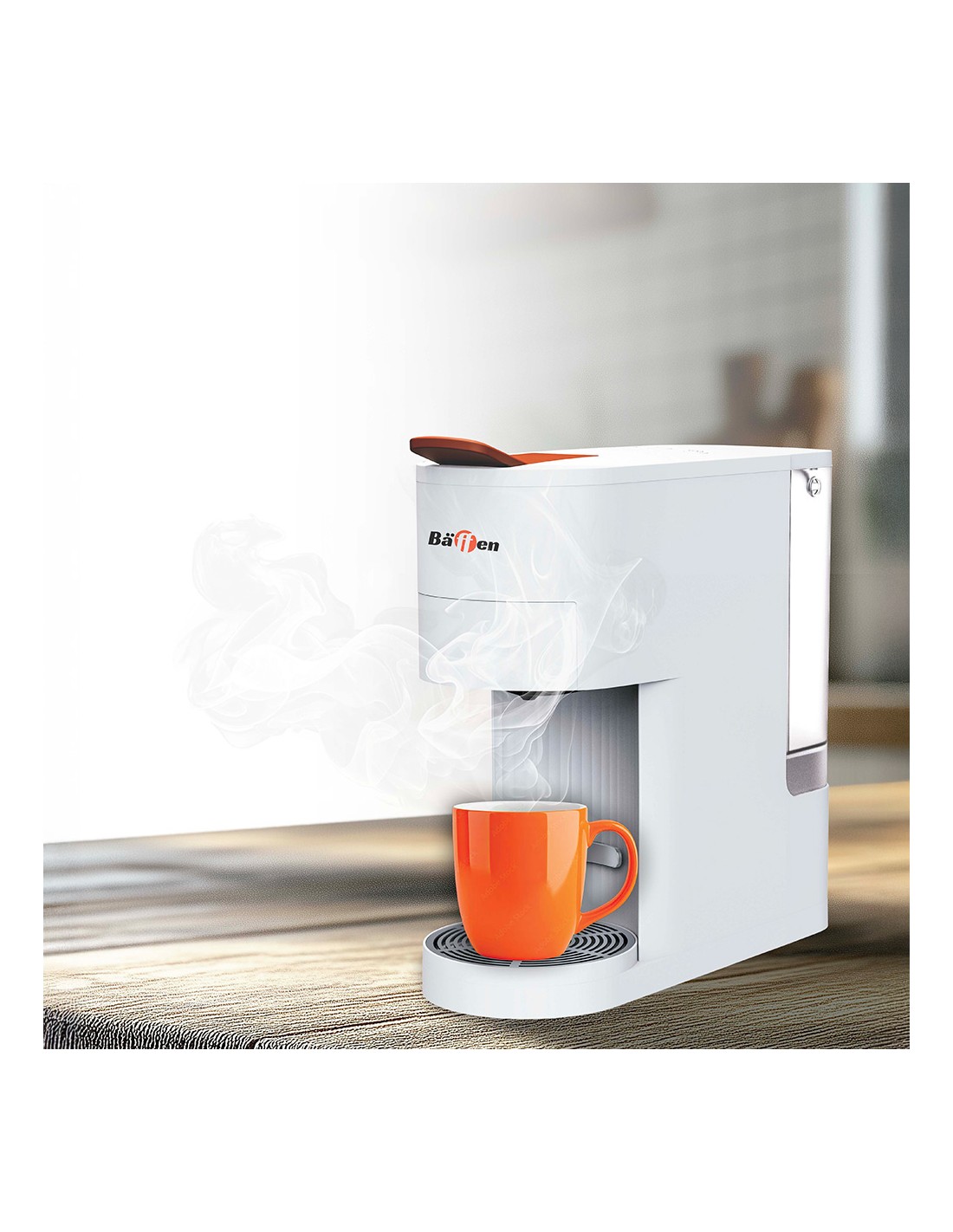 Cafetera multicap 4 en 1, 1400 w, blanca, 220 - 240 v ~ 50 - 60 hz presión 20 bares, depósito de 850 ml incluye 3 adaptadores: 1 adaptador para café en polvo y cápsulas de café ese 1 adaptador para cápsulas nespresso 1 adaptador para cápsulas dolce gusto. 1 filtro para café en polvo de una taza 1 filtro para café en polvo de 2 tazas cuchara medidora y prensa de café cable alimentación 1 m dimensiones cafetera 31 x 12 x 31 cm