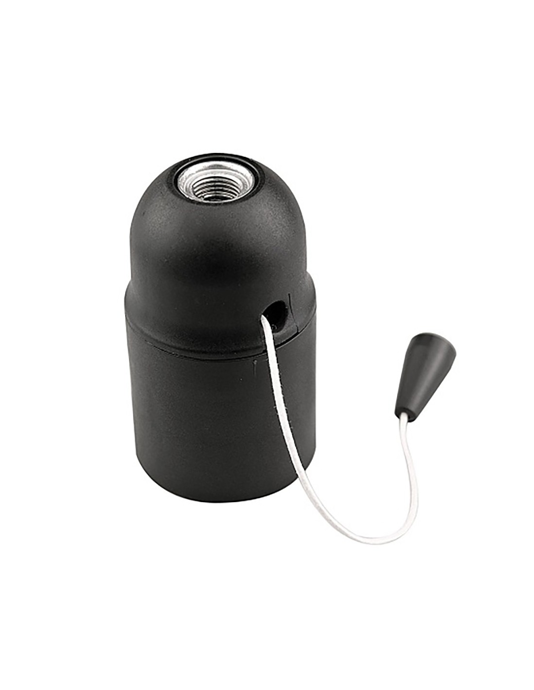 Portalamparas roscado liso con tirador e27 negro, 2 a, 250 v, ø40 x 70 mm