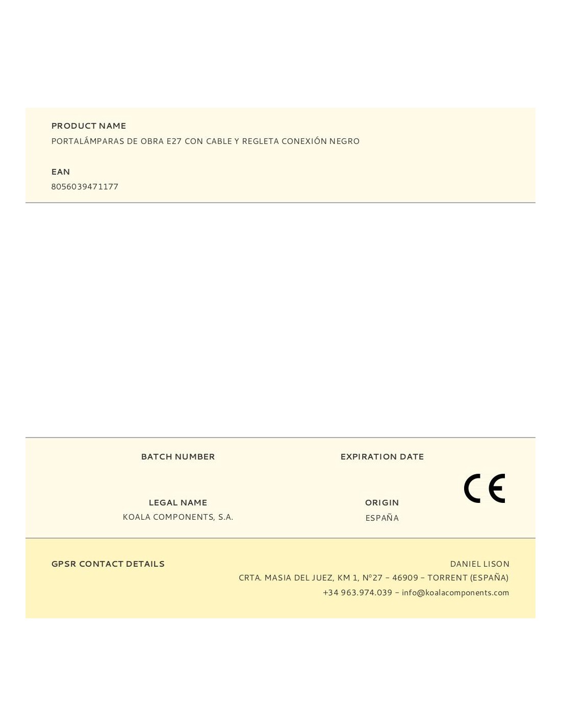 Portalámparas de obra e27 con cable y regleta conexión negro