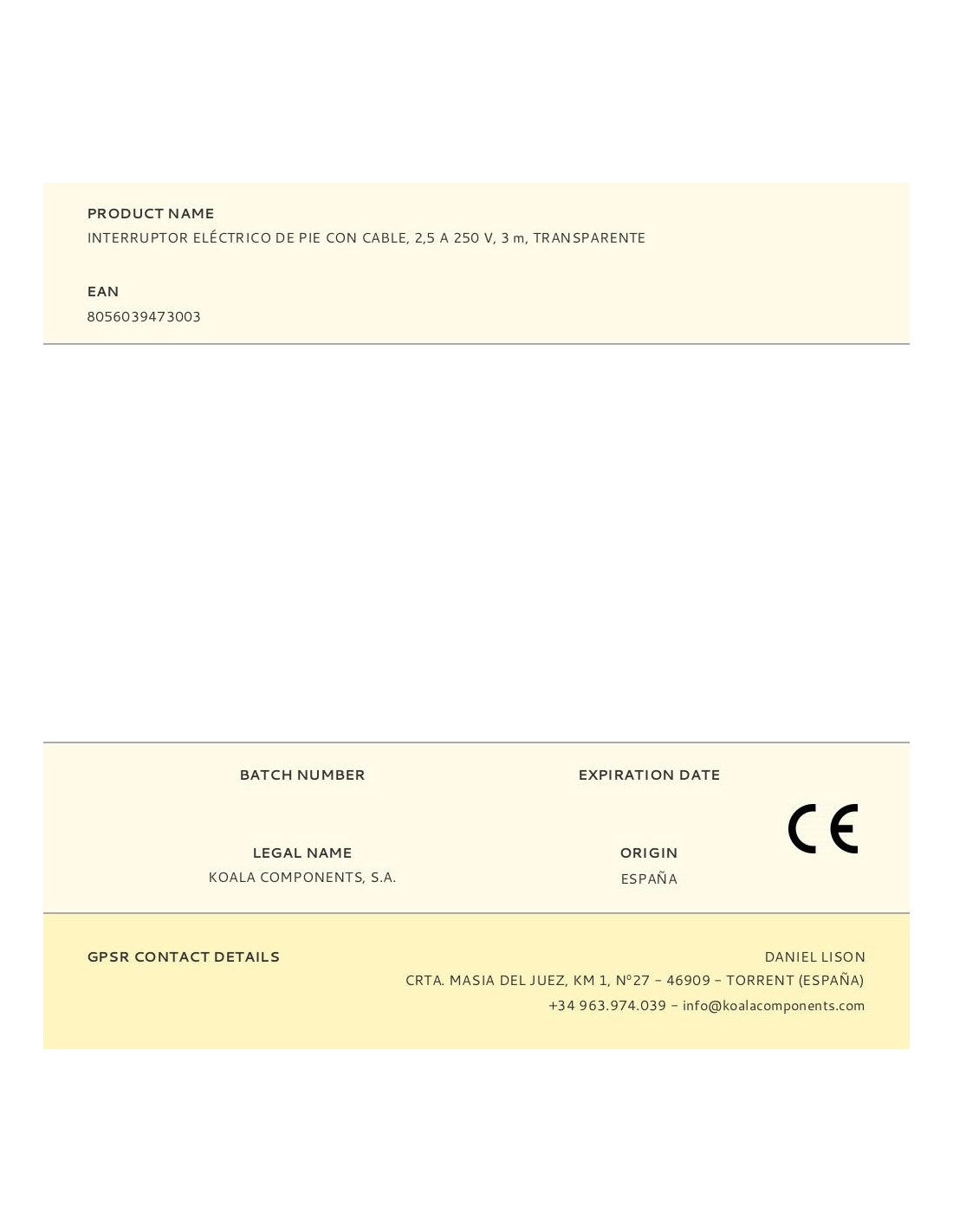 Interruptor eléctrico de pie con cable, 2,5 a 250 v, 3 m, transparente