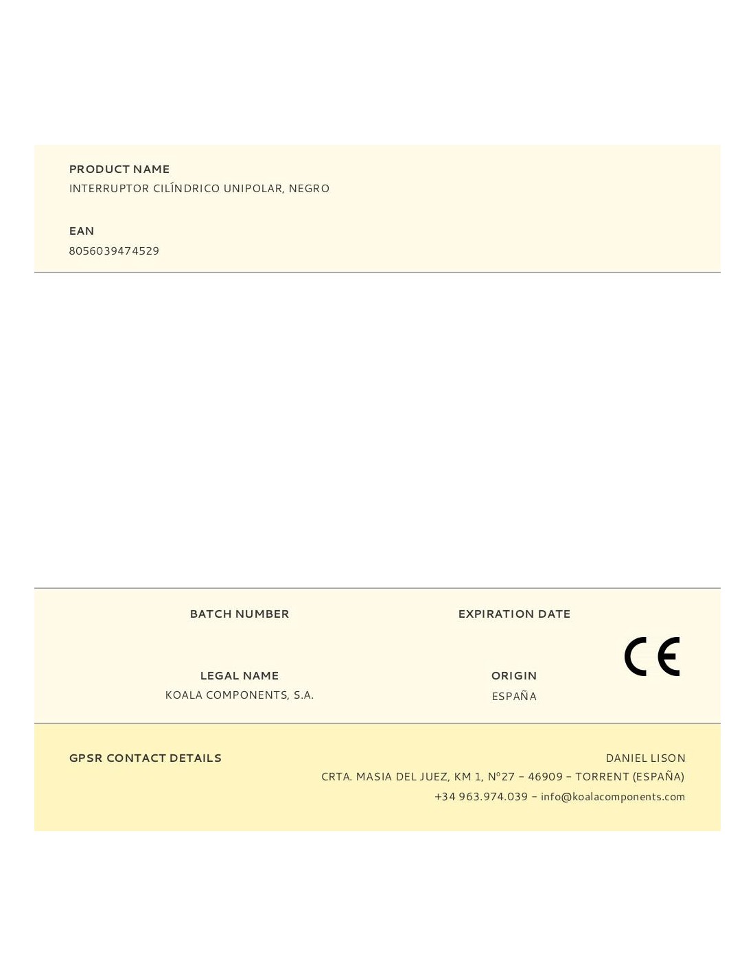Interruptor cilíndrico unipolar, con toma de tierra, negro, ø25 x 75 mm